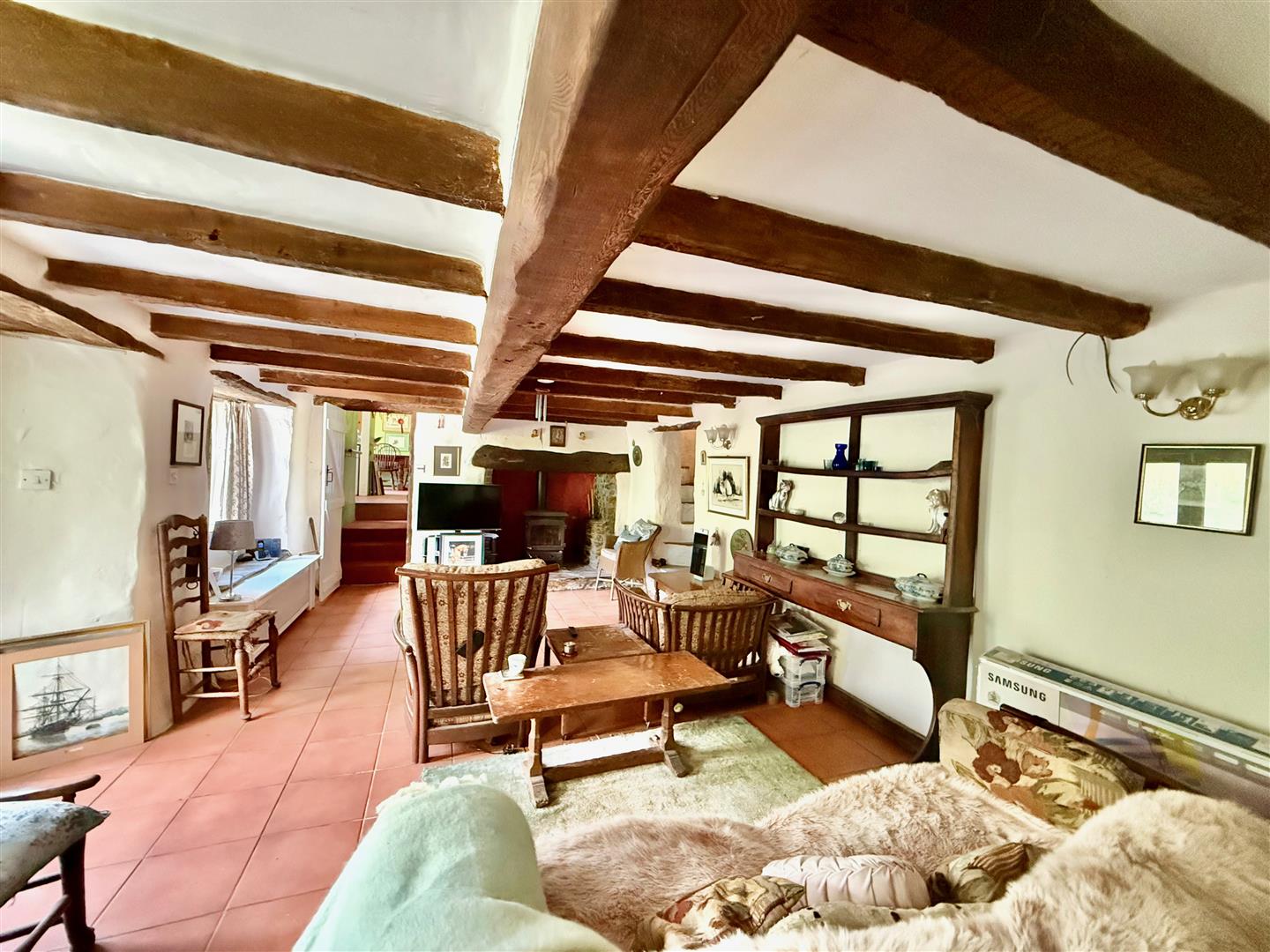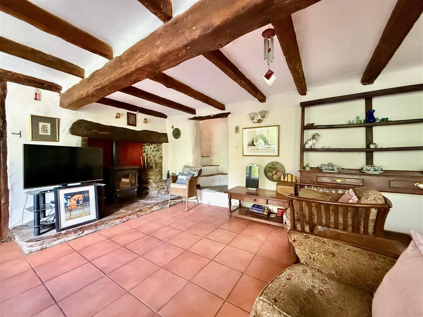 - Character living room with open fireplace