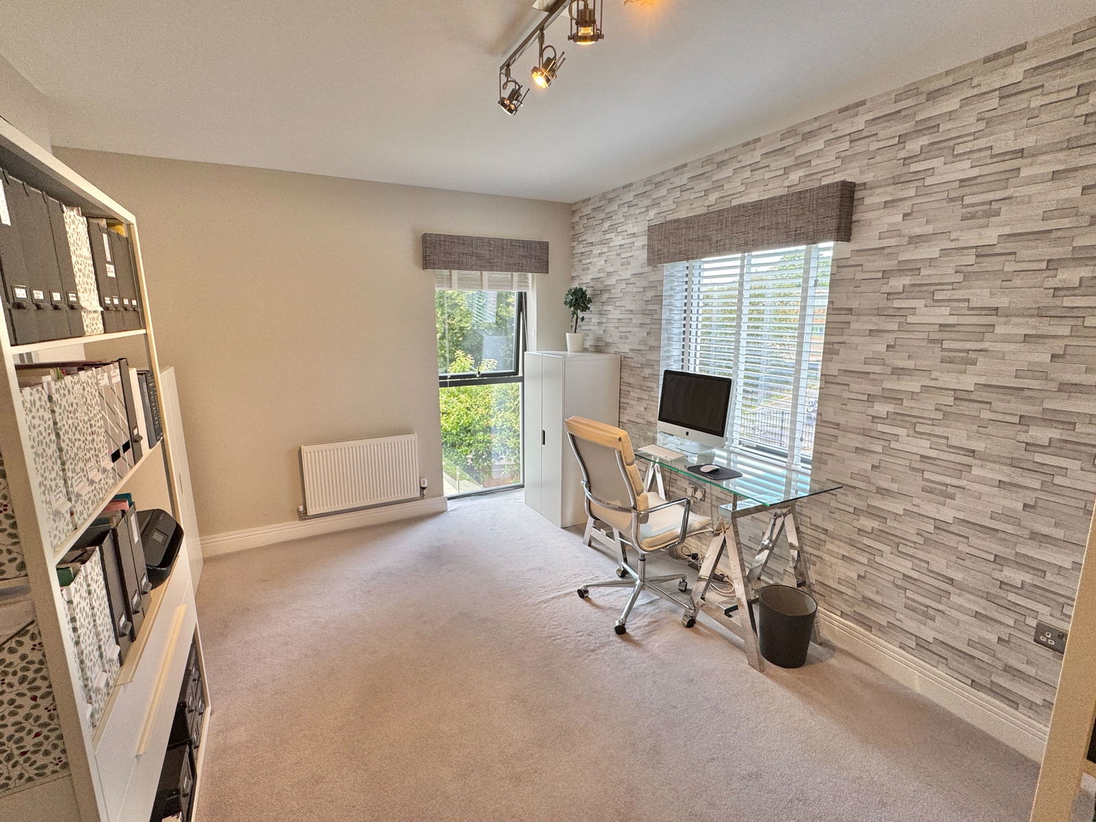 The family bathroom has been finished to a very high specification with a four-piece suite comprising, a double-ended roll-top bath, wash hand basin with storage beneath, low-level WC, and an oversized shower cubicle with a drencher head, tiled flooring, and chrome towel rail. A separate study offers a bright working environment with windows to the side and rear elevations and inset spotlights.