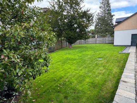 Externally, the front garden is landscaped for ease of maintenance and is gate enclosed with a herringbone brick driveway leads to a double garage with an electric roller shutter door, power, lighting, and an electric vehicle charging point. To the rear, the west-facing garden has a large, paved patio area enclosed with a glass balustrade. Steps lead down to a lower woodland area. To the side, there is a further large enclosed lawned area.