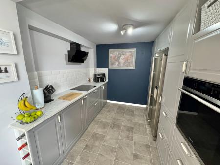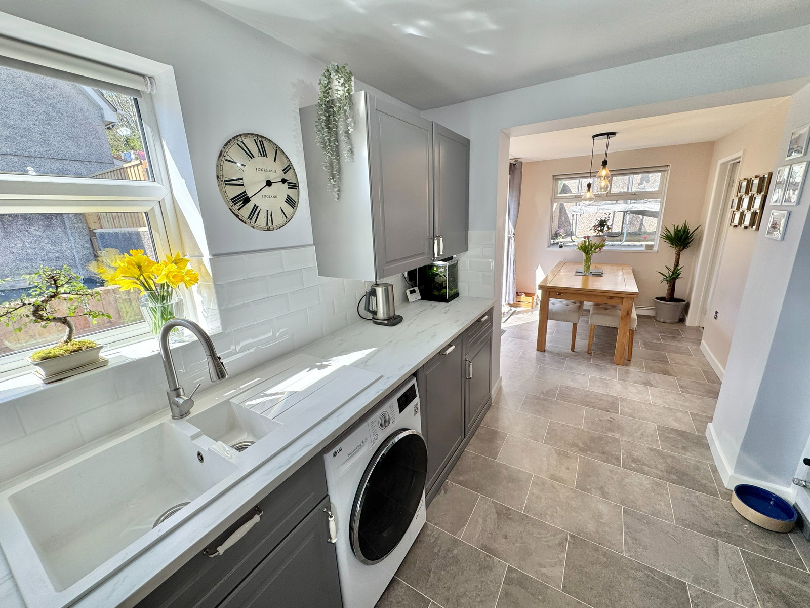 Lawson are delighted to market this beautifully appointed, semi detached, extended family home in a desirable, quiet cul de sac. The property benefits from well maintained accommodation arranged over two floors comprising; a PVC double glazed entrance porch to the front and a PVCu double glazed front door to the entrance hall; with wood effect flooring and carpeted stairs to the first floor landing with under stairs storage and door to the sitting room; a bright and airy room with French doors leading to a small front terrace, inset fireplace with a wooden mantelpiece. From the hallway a door opens to the kitchen/dining room a well appointed room fitted with a matching range of base and eye level storage cupboards with post formed and roll top work surfaces, an integral electric hot point oven, four burner ceramic hob and filter canopy, integral dishwasher, space for an American fridge/freezer, plumbing for a washing machine, tile effect flooring opening through to the dining area; a double aspect with a window to the rear elevation and French doors to the side and a door to bedroom four; a double room with wood effect flooring and a window to the rear.