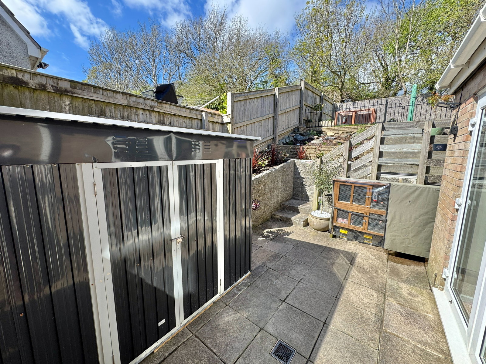 Externally to the front property, there's a driveway providing parking for two vehicles leading to a single garage with an up and over door and power and light. The front garden is terraced and has a southerly aspect and a range of mature shrubs and a beautiful Acer to the rear. The rear garden has a flagged patio with a large storage shed, power, outside light and water. Steps lead up to a level terrace, which is flagged. Further stone steps lead to a large area of lawn with a flagged north facing patio. The rear garden is fully fenced enclosed. The property benefits from gas fired central heating and PVC double glazing.