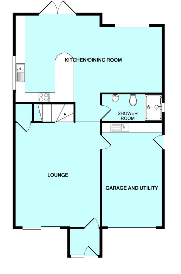 - Open-plan living space comprising a lounge & kitchen/dining room