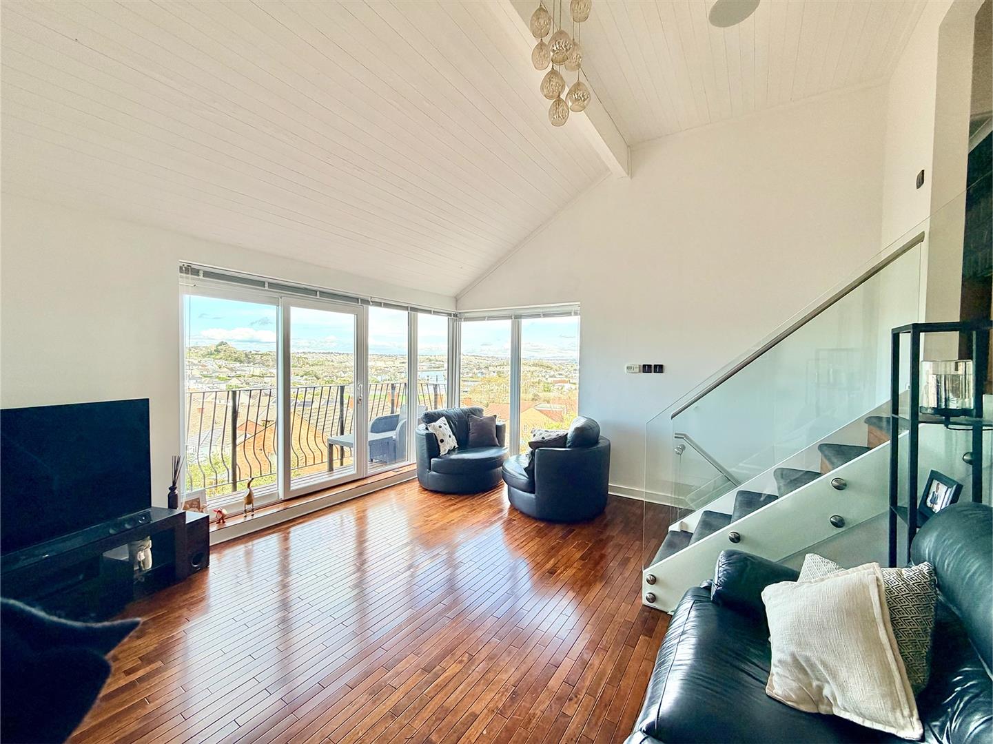 - Feature lounge with full-height glass to 2 elevations opening onto a balcony