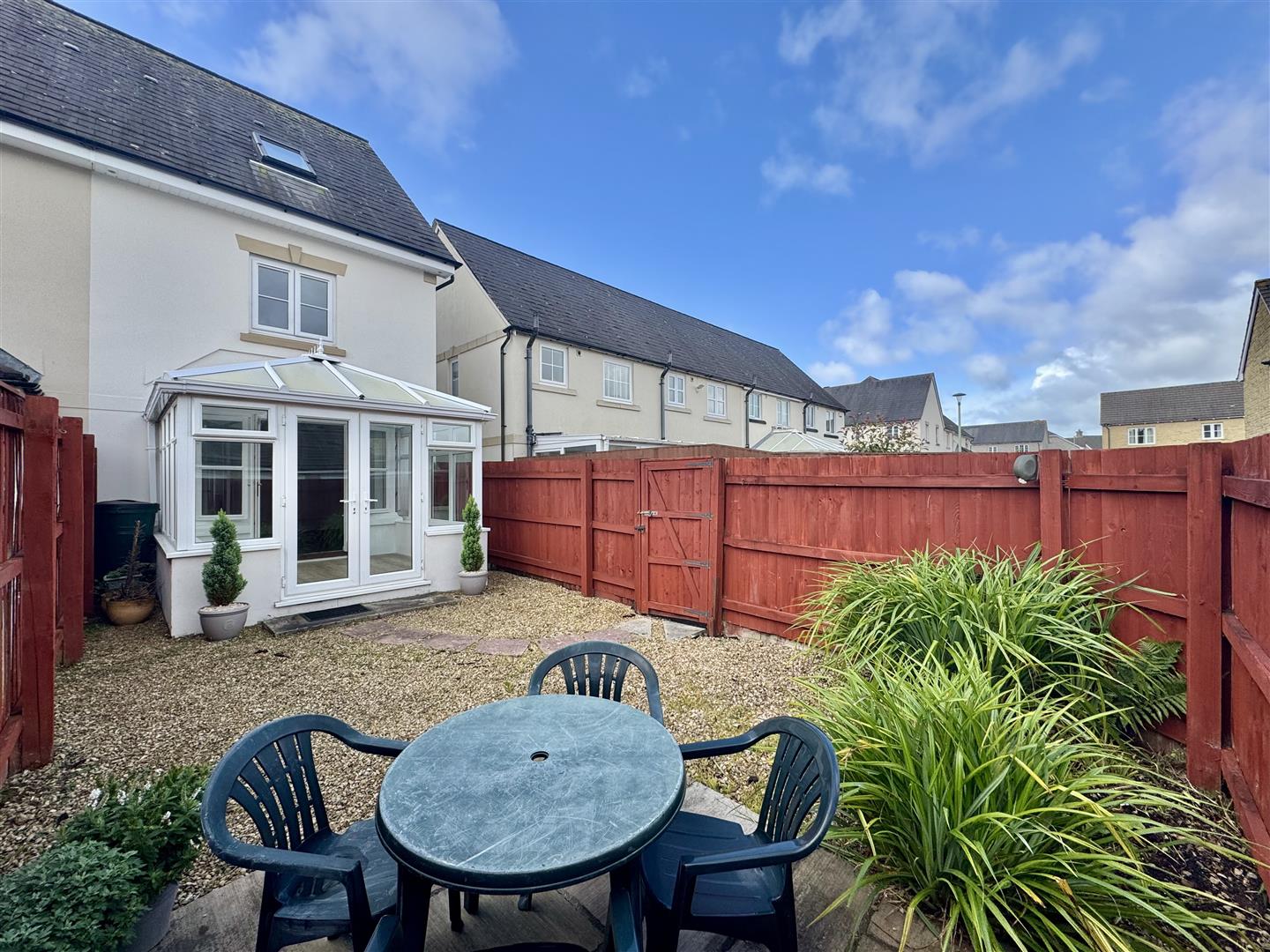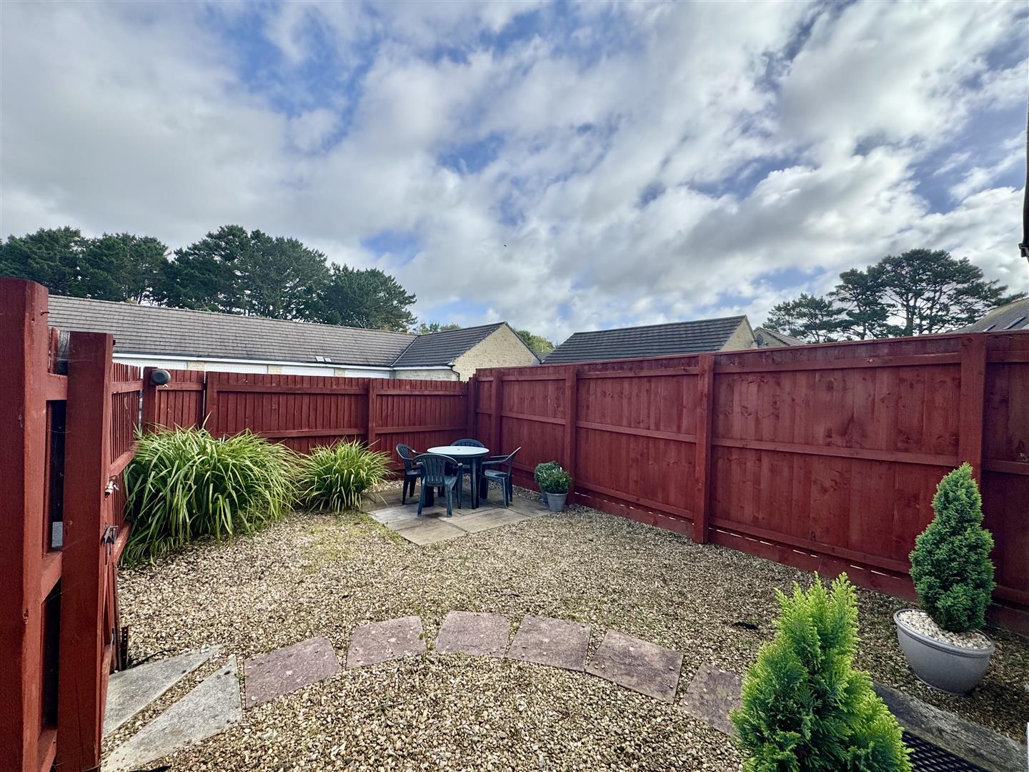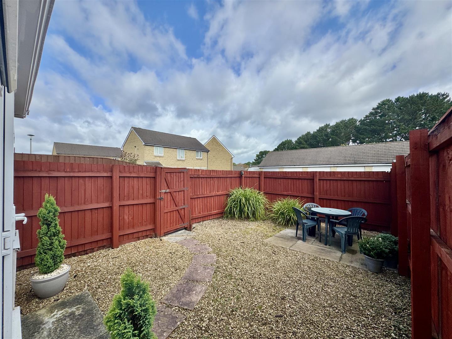 Outside - The property is approached via a public walkway. The rear garden is enclosed and laid to stone chippings for ease-of-maintenance, including a seating area and a wooden gate to the side leading to an access lane.