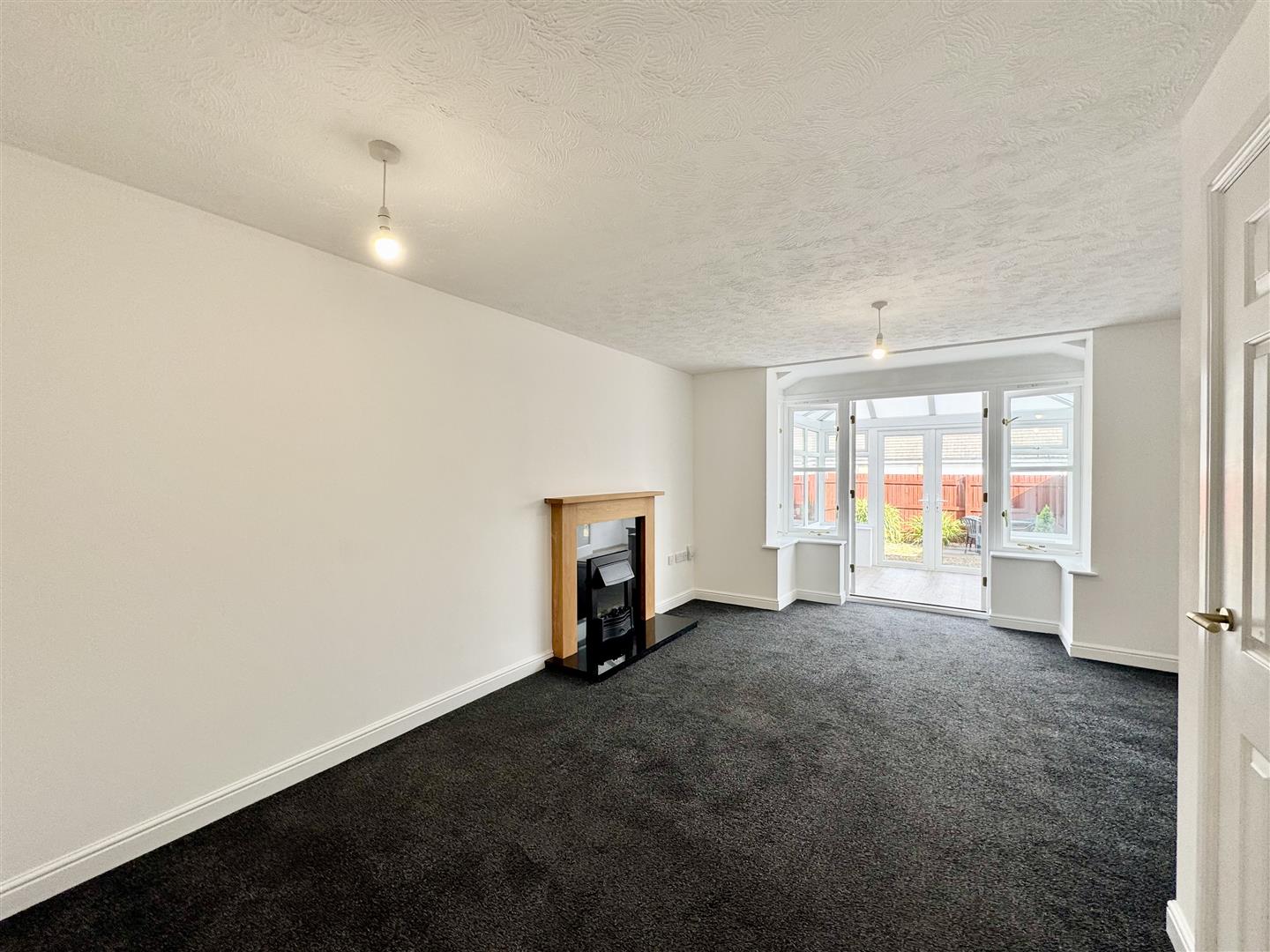 Lounge/Diner - 5.44 x 3.94 (17'10" x 12'11") - Artificial fireplace set onto a polished stone hearth and surround with wooden mantel over. Wooden-framed double-glazed French doors opening into the conservatory. Under-stairs storage cupboard.