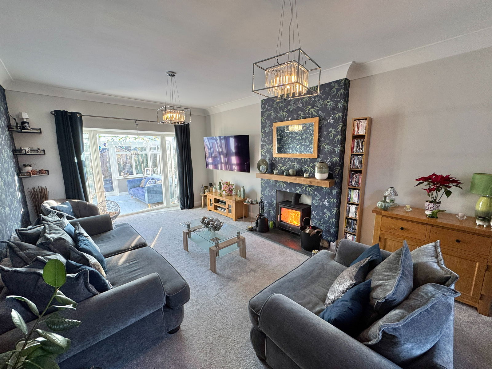 Lawson are delighted to market this beautifully appointed detached, luxury family home just a short walk from all amenities, excellent transport links and schooling. The Property benefits from modernised accommodation arranged over three floors, comprising; front door into an entrance porch, with ceiling light and a glazed inner door to the main hallway; with oak flooring and carpeted stairs ascend to the first floor landing, with a polished newel post, and handrail. A door leads to the sitting room, double aspect, moulded ceiling and a wood burning stove with an oak mantle and slate hearth. Double doors lead out to a conservatory, a PVC construction, underfloor heating and French doors to the garden.