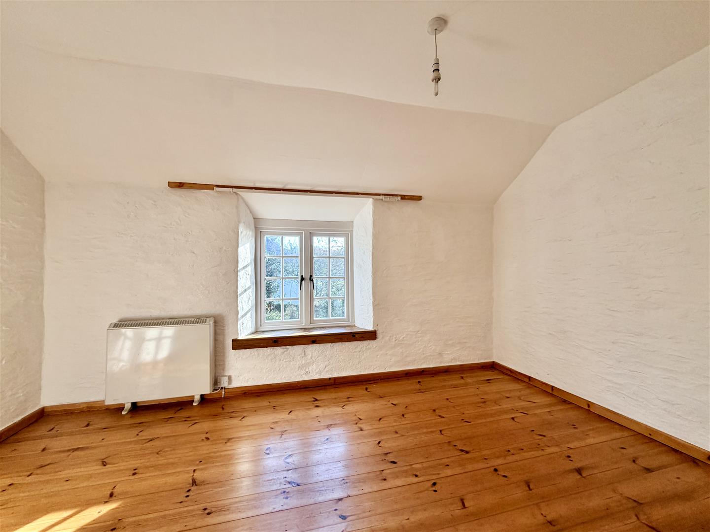 Bedroom One - 4.27m x 2.64m (14' x 8'8) - Over-stairs cupboard with shelving. Storage heater. Pine floorboards. Window overlooking the garden and Hooe Lake.