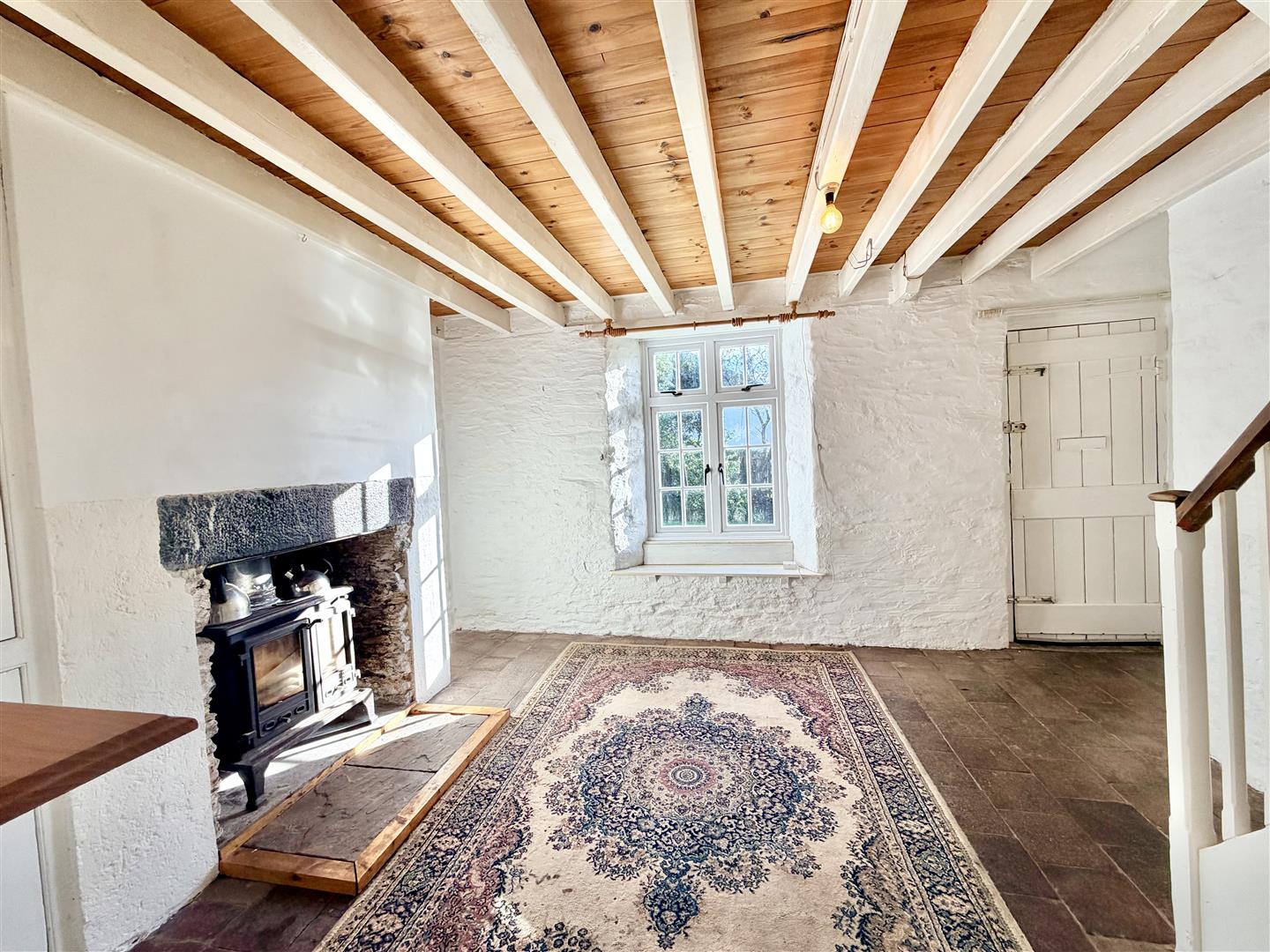 Living Room - 4.75m max width x 3.43m (15'7 max width x 11'3) - Chimney breast with a wood burning stove. Storage to one side of the chimney breast. Storage heater. Matching stone paved floor. Staircase ascending to the first floor. Under-stairs storage cupboard. Window overlooking the garden. Doorway leading to outside via the front elevation.