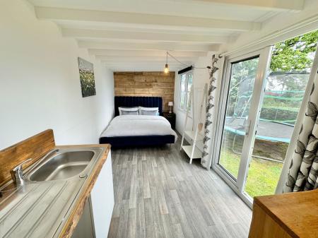 The rear garden has a large composite decked terrace with an outside light and an outside tap then leads to a very large level lawn which is fully fence and hedge enclosed and a large timber build studio which is fully insulated with power and light, wood effect flooring, window to the side elevation, built in sink unit with storage beneath, an ensuite shower room with a low level WC, pedestal wash hand basin and a panelled shower cubicle with electric Mira shower unit.