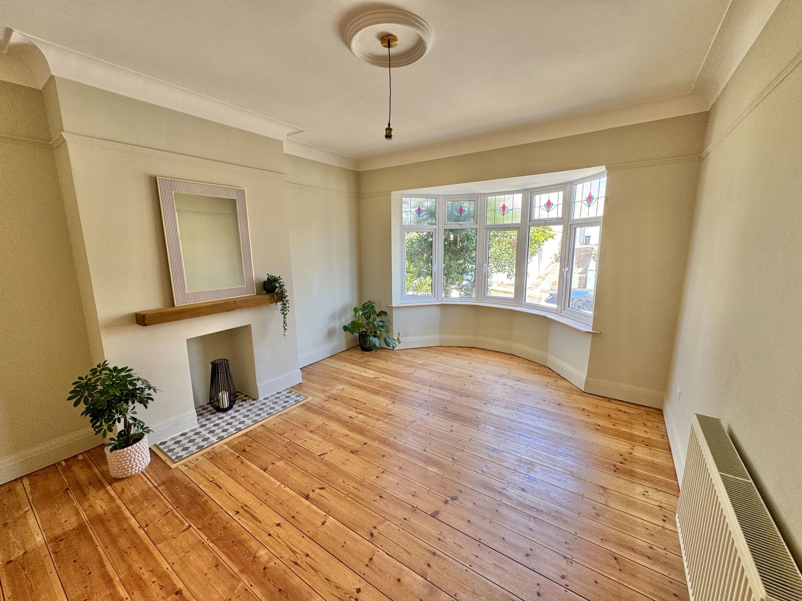 Bedroom one is a spacious double with a large bay window to the rear that offers far-reaching views across Central Park, the city, and Plymouth Sound. This room also features a picture rail and original stripped door. Bedroom two is another generous double with a front-facing bay window, built-in storage cupboard, picture rail, and moulded ceiling. Bedroom three is a good-sized single room with a front-facing window and picture rail.