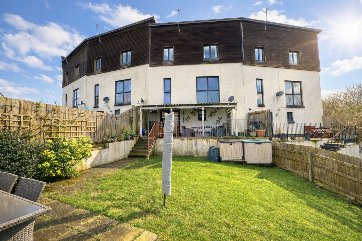 Externally, there is a small front garden which is gravelled for ease of maintenance and there are two allocated private parking spaces and an outside light, there is a side access leading to the rear garden. A particular feature of the house is this beautiful large fully enclosed southwest facing garden with a flagged patio, outside light and an outside tap. The garden is predominantly laid to lawn for ease of maintenance.