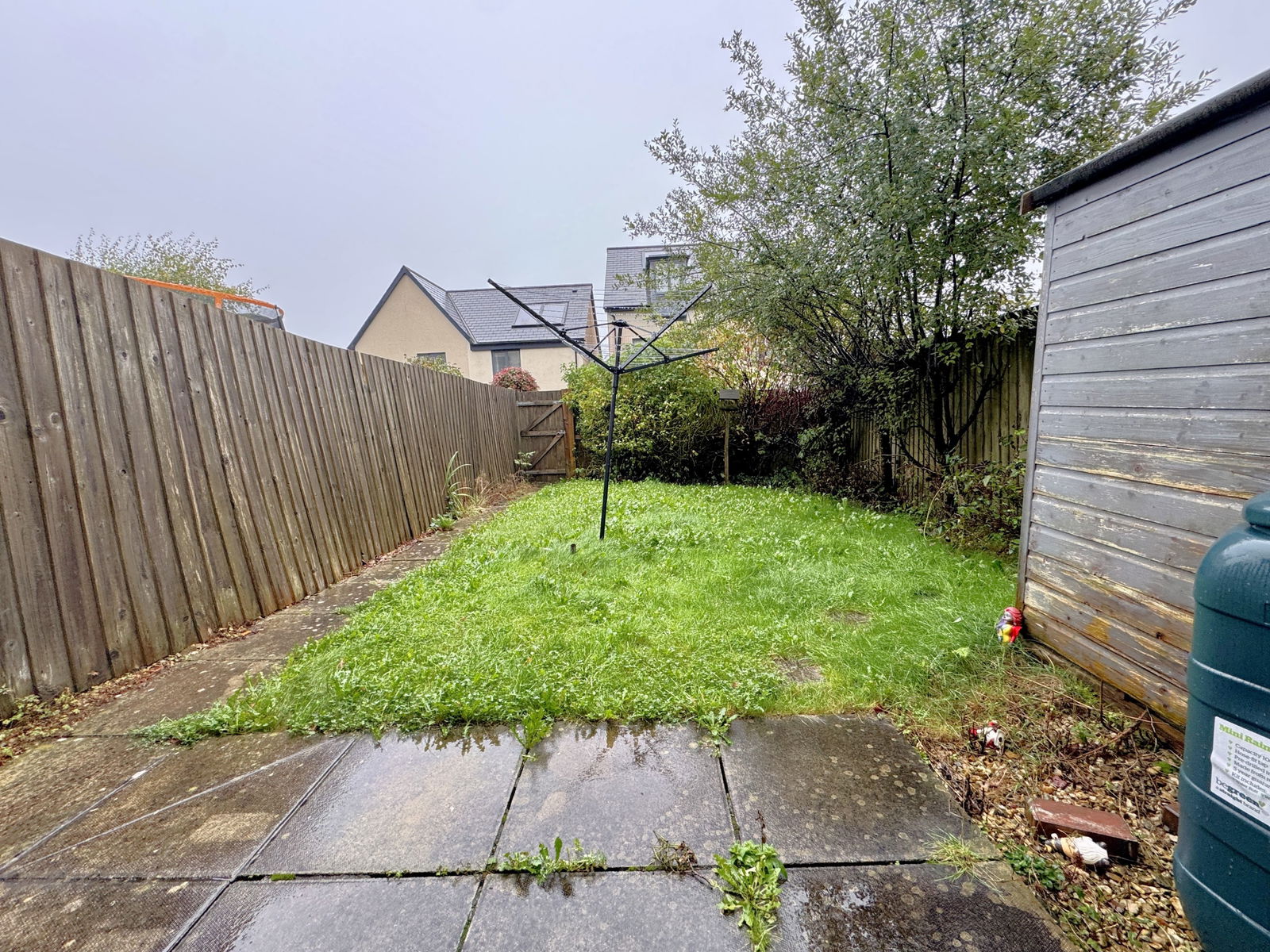 To the front of the property, there is a pathway to the front door with an adjacent garden, and to the rear, there is a paved area leading to a level lawned garden and is enclosed by fence boundaries. A gate then gives access to one allocated parking space.