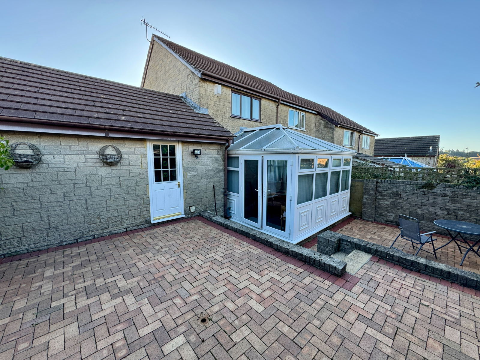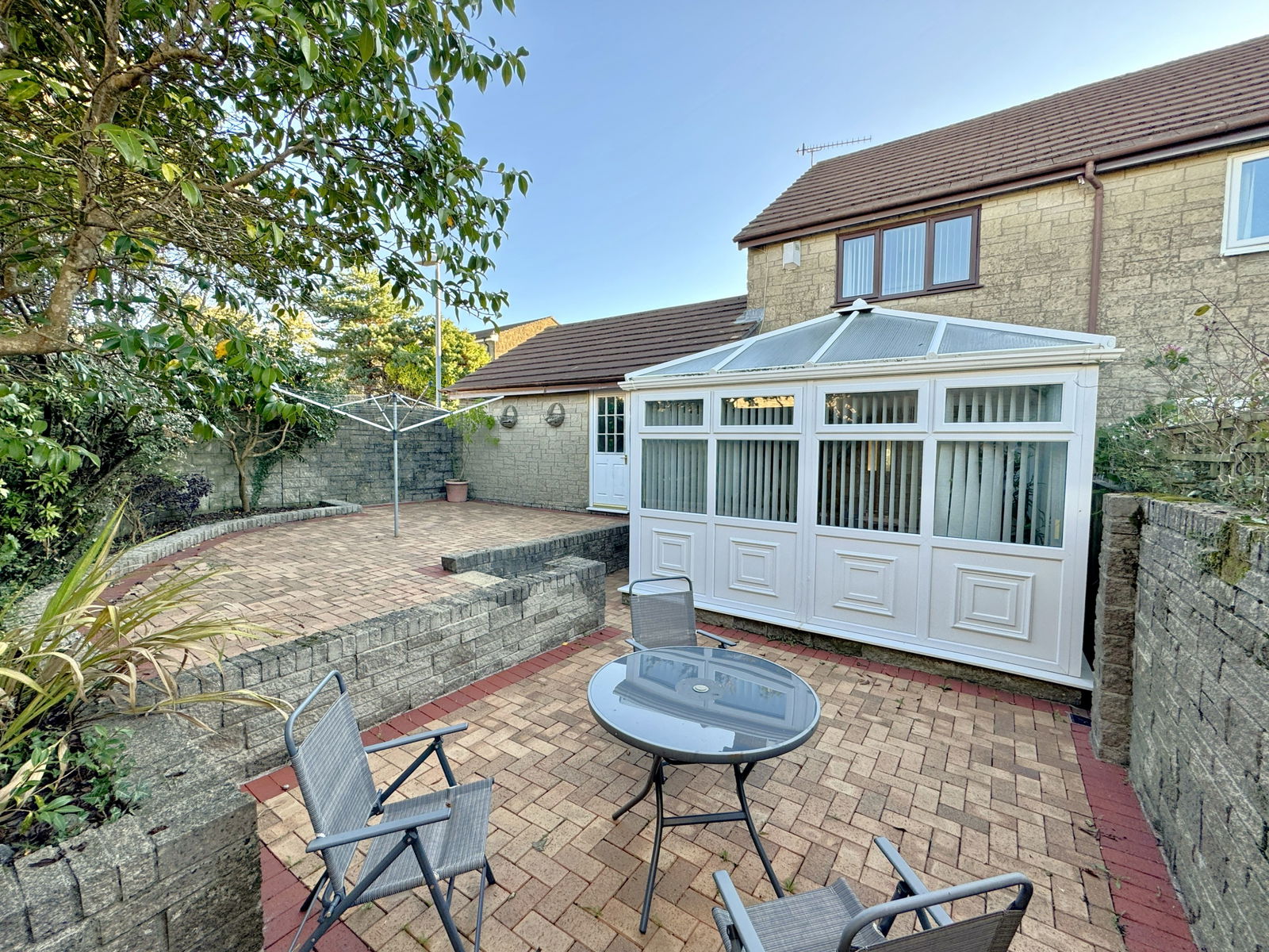 Rear - Low maintenance paved garden enclosed by walled boundaries.