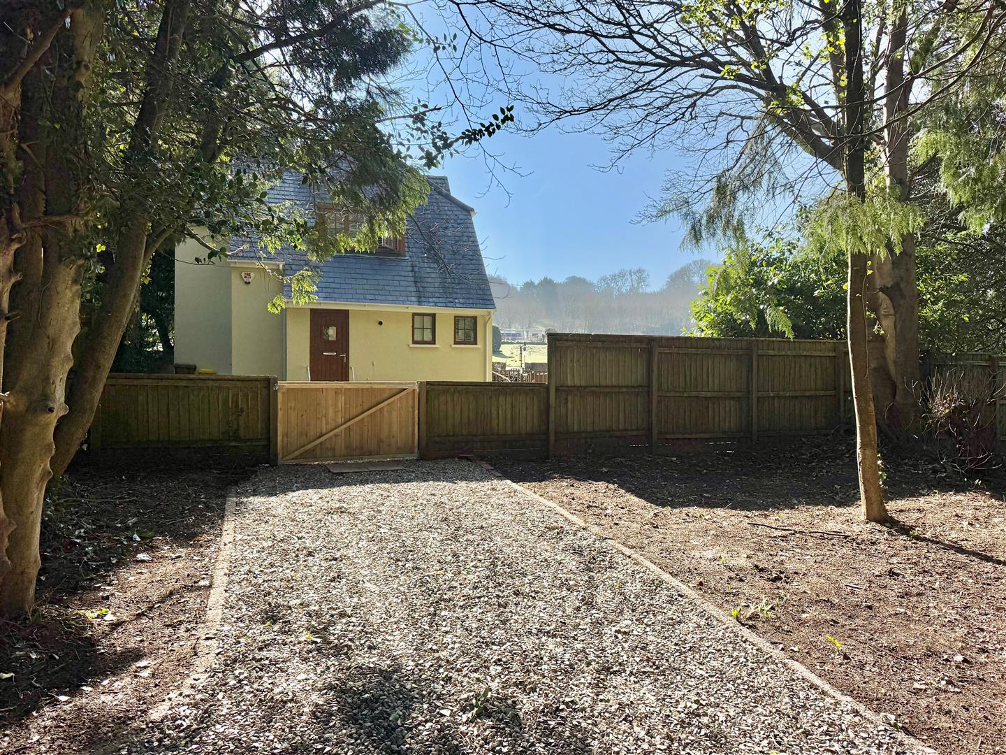 Outside - The property is approached via the driveway to St Elizabeth House which you follow all the way around until you return almost to where you came in. Turn left into a private tarmac driveway which brings you into a cleared area where there are 3 garages with up-&-over doors in a block on the right hand side. On your left there are another 3 older-style garages with wooden stable doors, single-glazed window panels and corrugated roofs. A stone-chipped drive leads to a wooden pedestrian gate, opening to the cottage grounds. The garden is enclosed by a feather-edged boundary to 2 sides, the other side is formed by trees and the rear boundary is a wall with a wooden gate that leads directly into St Elizabeth's car park. This enclosed area is mainly laid to lawn, with a raised deck and a slabbed walkway leading to the rear gate. From the kitchen a door opens onto a paved walkway which runs through to wooden double doors that are built into the side fence, opening into another large area laid to lawn (not marked) which runs parallel to the forestry area.