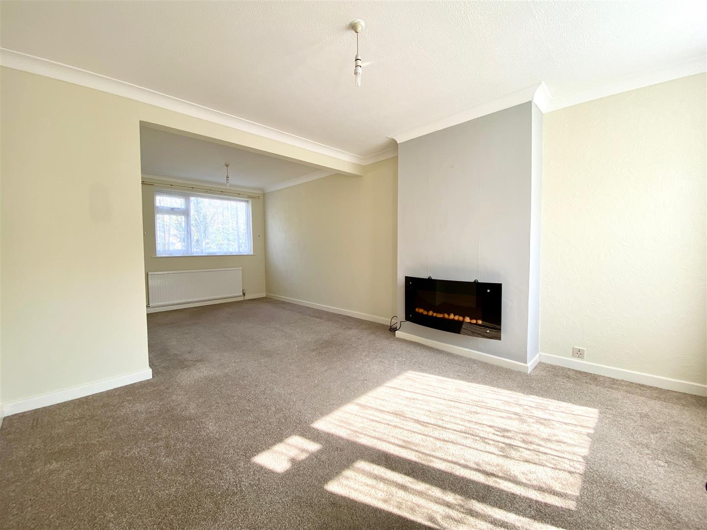 Lounge/Diner - 6.26 x 3.51 narr to 2.66 (20'6" x 11'6" narr to 8' - Dual aspect with uPVC double-glazed windows to the front and rear elevation. Wall-mounted electric fire. Serving hatch to the kitchen.