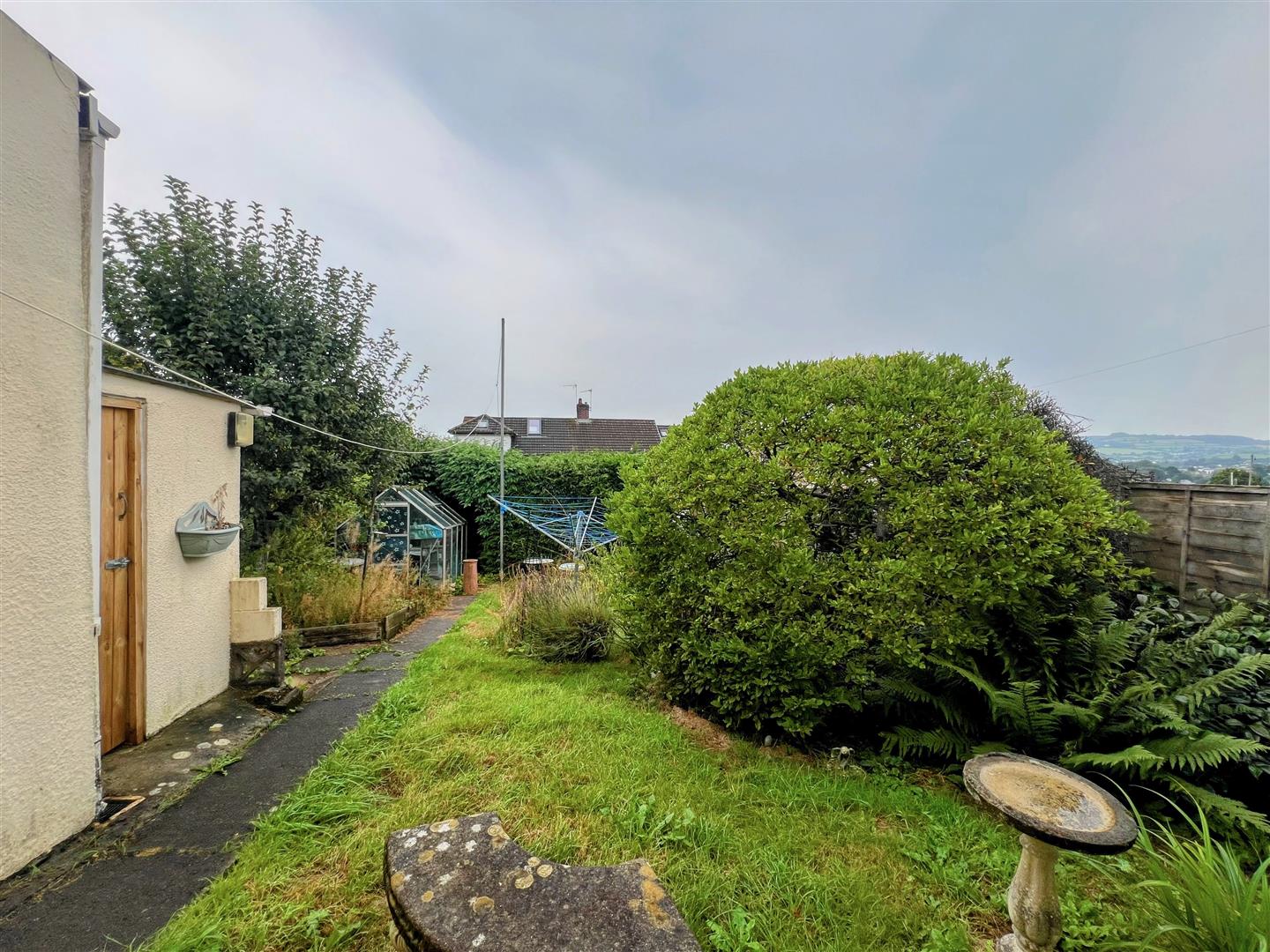 Outside - The property is approached through a metal gate to a concrete driveway, in turn leading to the garage. A path leads to the front of the house and around the side, to a further metal gate providing access to the rear garden. The front garden is tiered with mature shrubs and bushes. The rear garden is mostly laid to lawn with mature shrubs, bushes and trees and a concrete path running down the middle. Greenhouse. Wooden shed. Brick-built shed attached to the back of the garage.