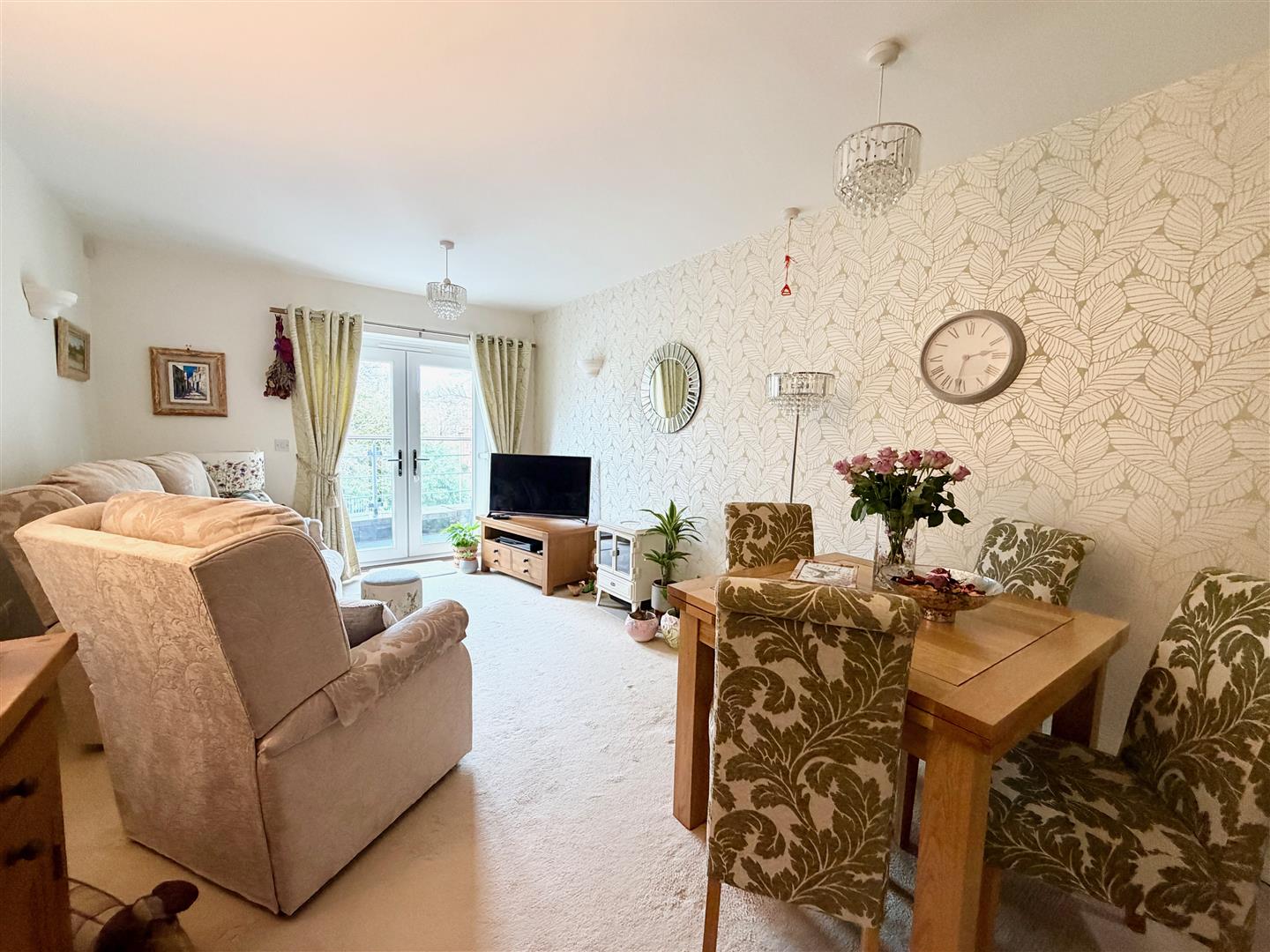 Lounge/Diner - 5.50 x 3.06 (18'0" x 10'0") - Wooden doors with inset glass panelling opening into the kitchen. uVC double-glazed patio doors opening onto the balcony.