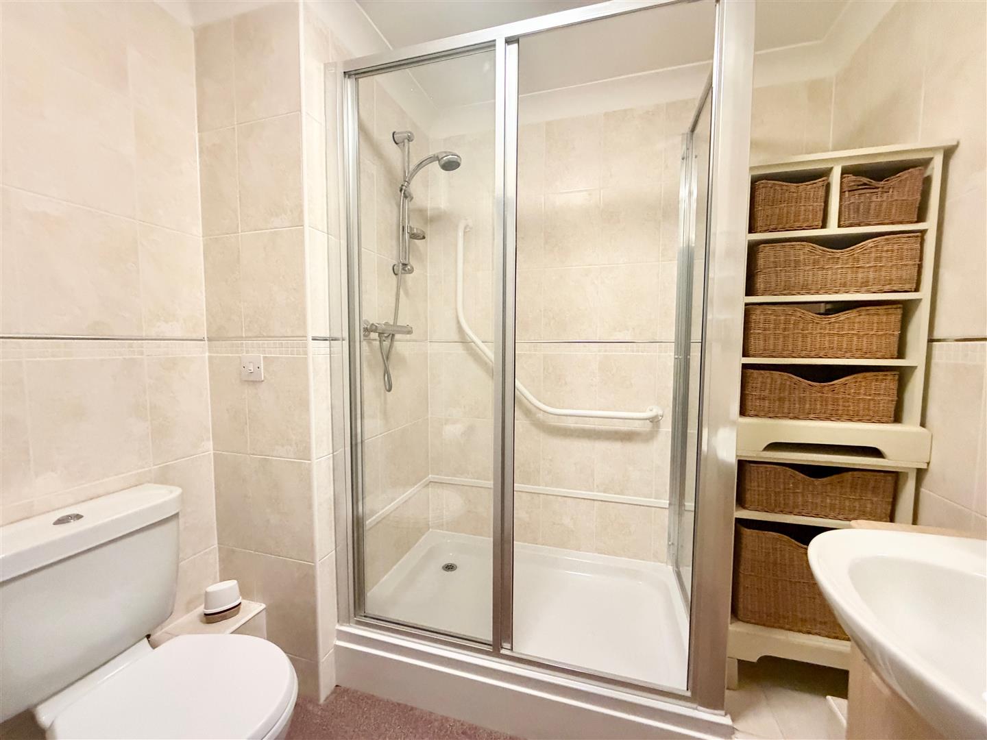 Shower Room - 2.09 x 1.71 (6'10" x 5'7") - Fully-tiled and fitted with a matching suite comprising a shower cubicle, wash handbasin set onto a storage unit and a close-coupled wc. White heated towel rail.