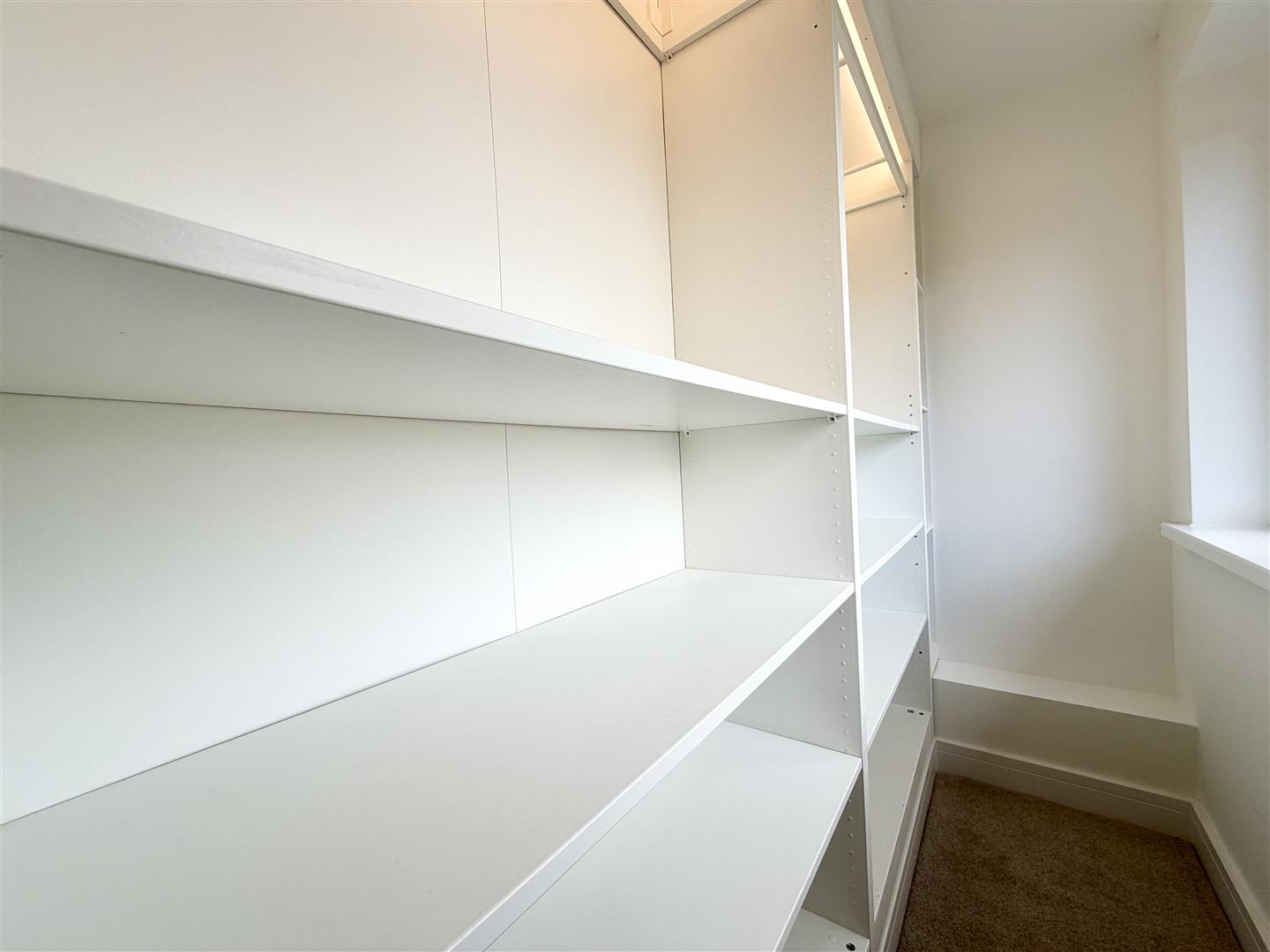 Walk-In Wardrobe - 2.61 x 0.62 (8'6" x 2'0") - Fitted with shelving and hanging units with courtesy lighting. uPVC double-glazed window to the rear elevation. Ceiling spotlighting.