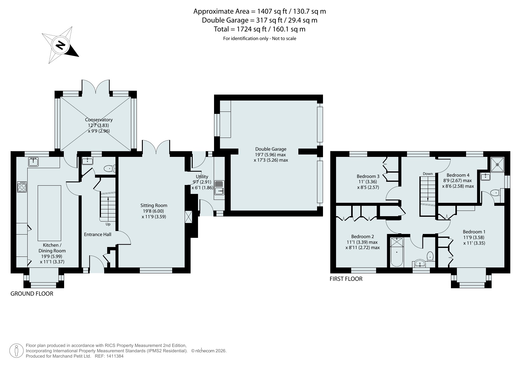 - Approx. 1,407 sq ft of accommodation, plus 317 sq ft double garage (total approx. 1,724 sq ft)