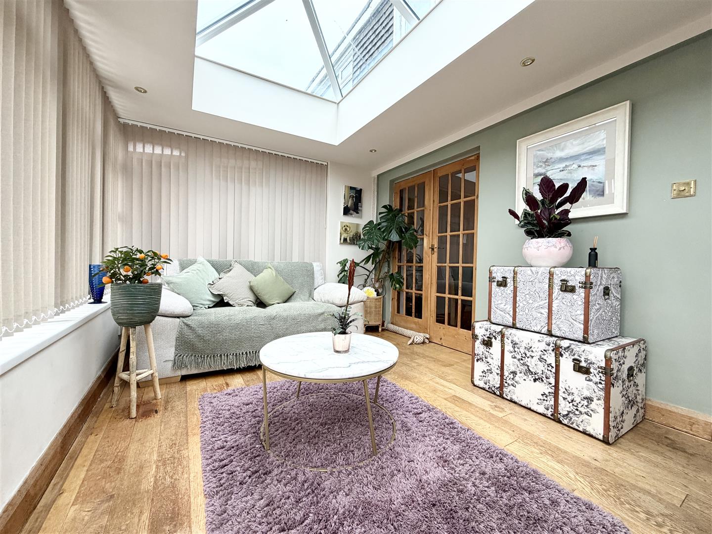 Sun Room - 4.69 x 3.01 (15'4" x 9'10") - Constructed beneath an orangery roof with uPVC double-glazed windows to the side and rear elevations. Patio doors opening to the decking.