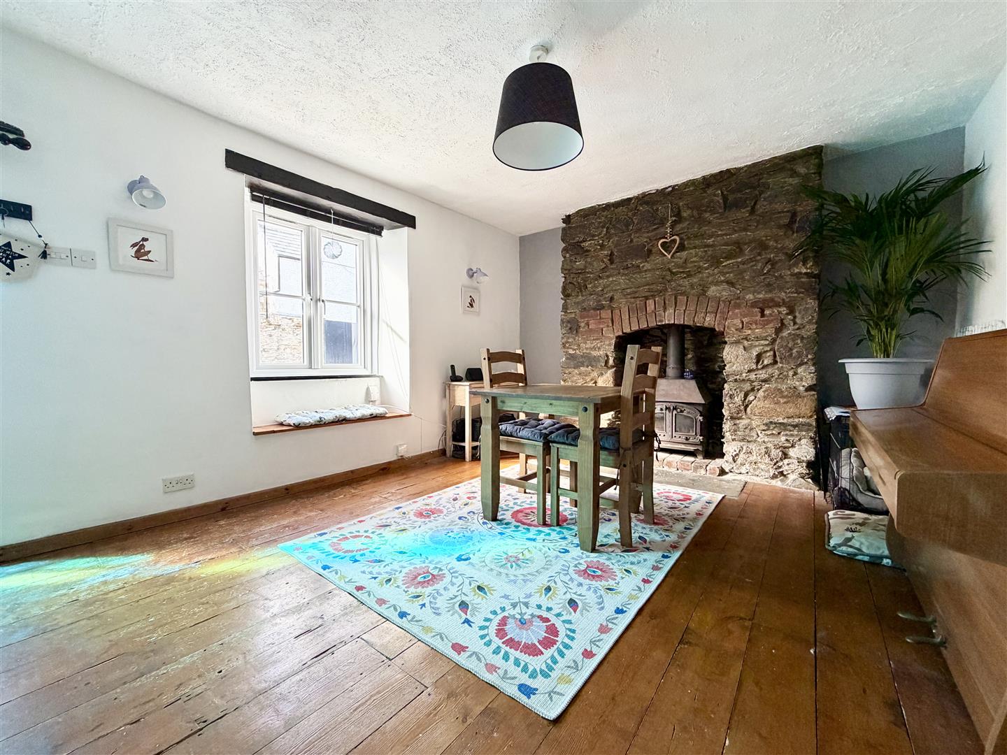Dining Room - 4.31 x 3.65 (14'1" x 11'11") - Inset wood-burner set upon a brick hearth. Storage cupboard, currently housing the tumble dryer. Stairs ascending to the first floor landing. uPVC double-glazed window to the front elevation. uPVC double-glazed door leading to the front of the property.
