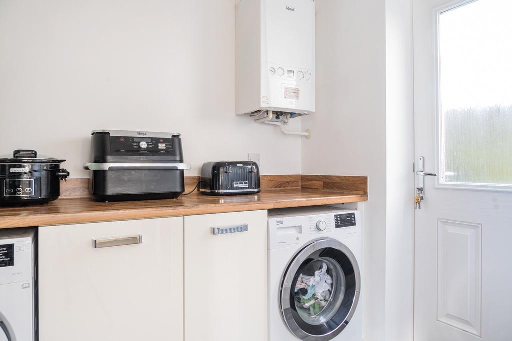 - Contemporary kitchen with integrated appliances, plus separate utility room and ground floor cloakroom/WC.