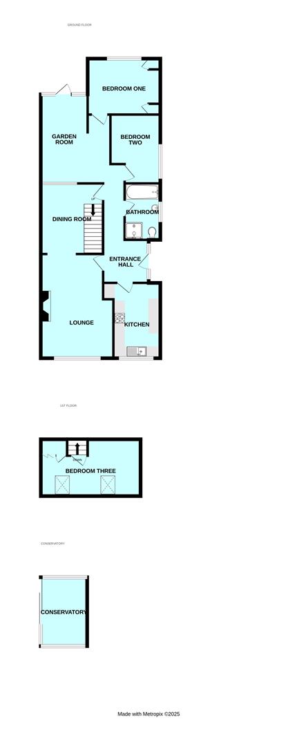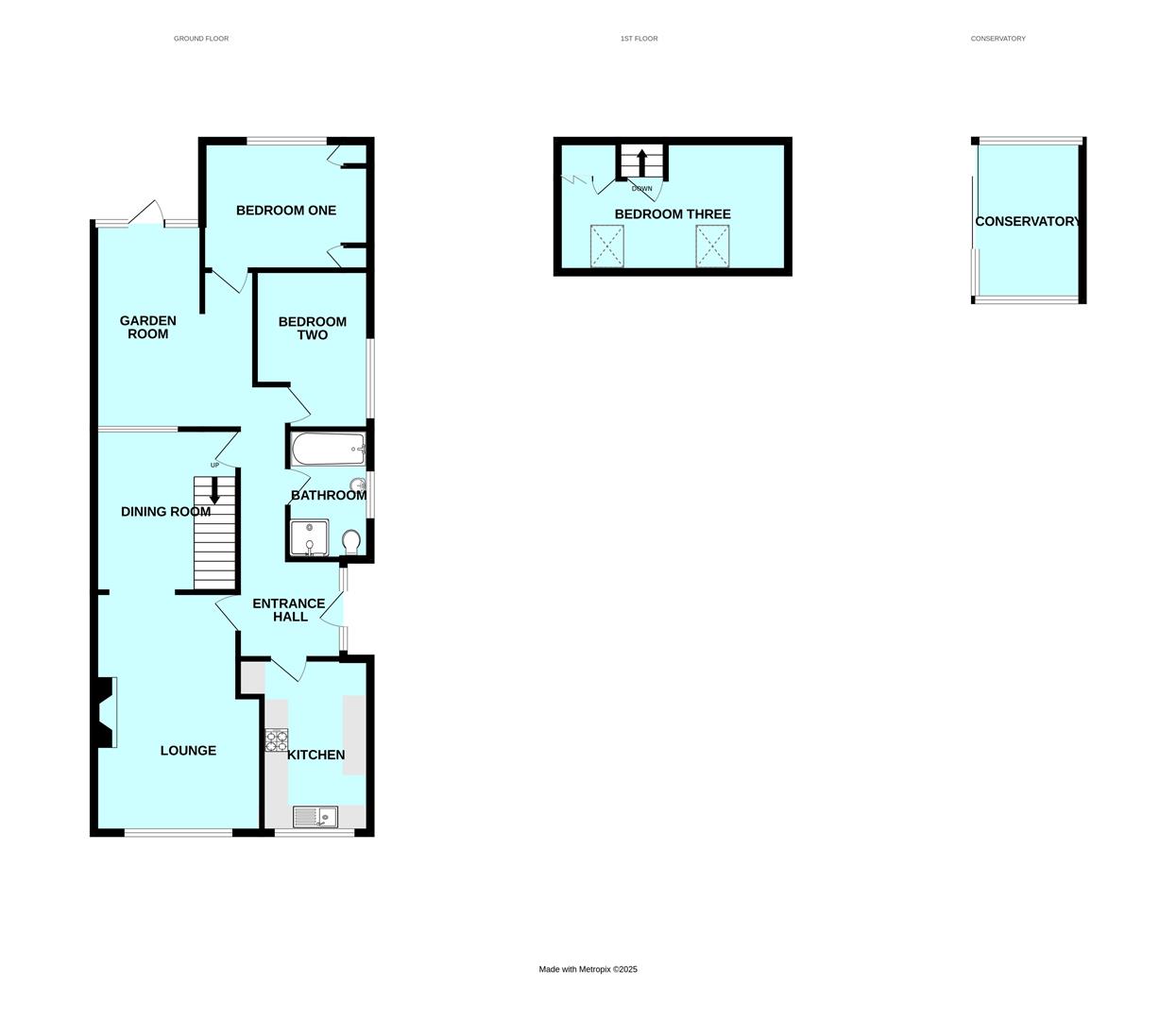- 3 bedrooms, two on the ground floor & one in the roof space