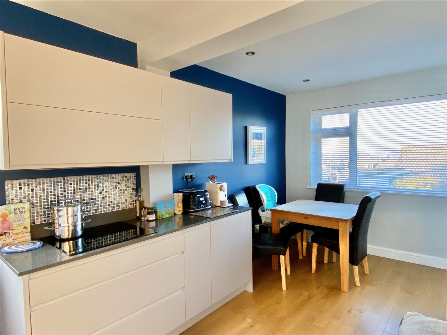 Kitchen/Dining Room - 5.69m x 3.71m (18'8 x 12'2) - Superbly fitted with a range of contemporary cabinets, work surfaces and splash-backs. Built-in oven. Built-in microwave. Inset hob. Ample space for table and chairs. Spotlighting throughout. 2 recessed cupboards - one housing the boiler. Space for free-standing fridge/freezer. Space and plumbing for washing machine. Integral dishwasher. uPVC double-glazed windows to the front and rear elevations. uPVC obscured double-glazed door leading to outside.