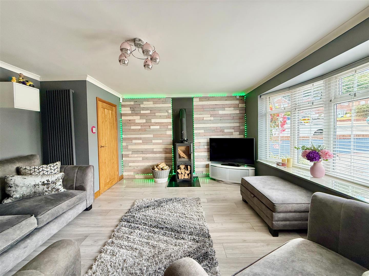 Lounge - 4.50m x 4.32m (14'9 x 14'2) - Window with fitted blind to the front elevation. Wood burner set onto a slate hearth. Feature panelling to one wall. Laminate flooring. LED lighting.