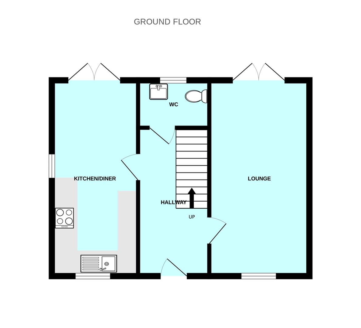 Kitchen/Dining Room - 5.67 x 2.50 (18'7" x 8'2") - A triple aspect room with double-glazed windows to the front and side elevations together with French-style double doors leading out onto the rear patio. Within the kitchen area there is a series of white matching eye-level and base units with grey work surfaces and matching up-stands. Built-in appliances including stainless-steel canopied extractor hood above the electric hob with an electric oven beneath. Space and plumbing for washing machine. Space for fridge-freezer. Additional plumbing for a dishwasher. Cupboard concealing the gas boiler.