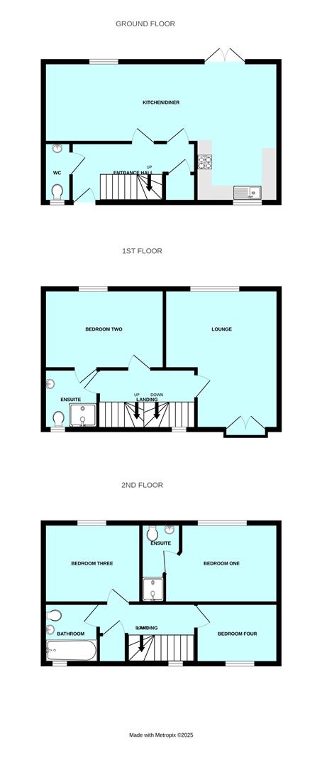 - Master ensuite, Jack and Jill ensuite shower room & family bathroom