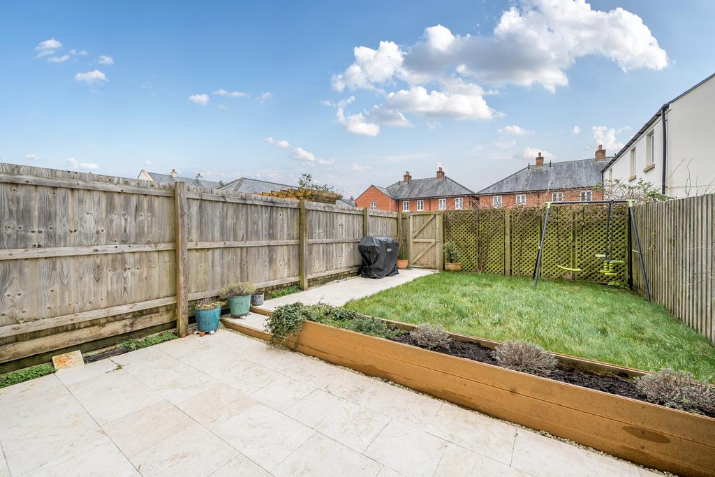 - South-facing landscaped garden with terrace and lawn; off-road parking and garage