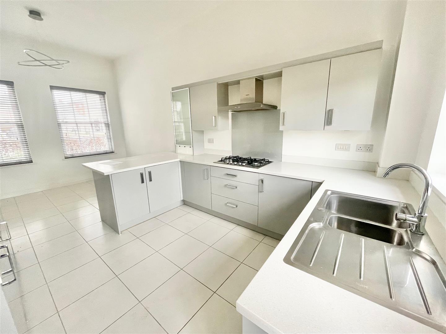 Kitchen/Dining Room - 6.36 x 3.33 (20'10" x 10'11") - A dual aspect room with double-glazed windows to both the front and rear elevations. Within the kitchen area there is a series of contemporary-style matching eye-level and base units with work surfaces. Inset stainless steel one-&-a-half bowl sink unit with mixer tap. Built-in 4-ring gas hob. Built-in double oven. Integrated dishwasher. Tiled floor. Part-glazed door leading to the rear garden.