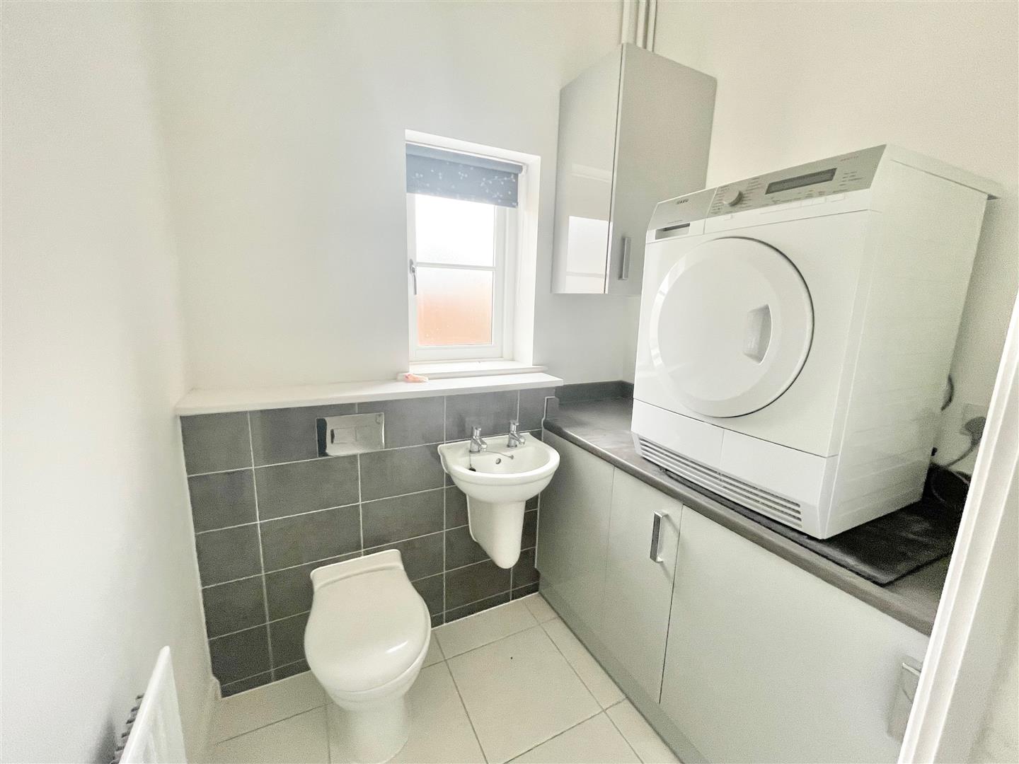 Utility/Wc - 1.97 x 1.63 (6'5" x 5'4") - Fitted with a boxed-in low level wc and a sink unit. Work surface with space for a washing machine. Space for a tumble-dryer. Wall-mounted gas boiler. Tiled floor.