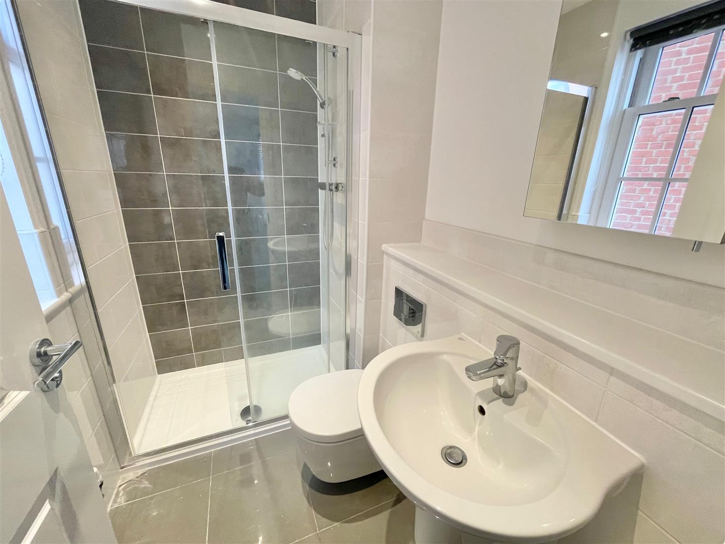 Ensuite Shower Room - 1.51 x 1.38 (4'11" x 4'6") - Modern suite comprising a built-in shower unit, low level toilet and sink unit. Tiled floor. Double-glazed window to the side elevation.