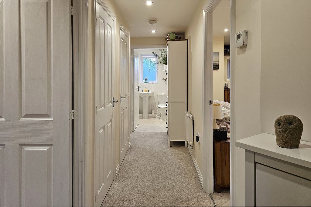 The contemporary fitted kitchen is fully equipped with an integrated dishwasher, fridge-freezer, oven, and hob. Superbly appointed throughout, the home further benefits from PVCu double glazing, gas central heating, and newly laid floor coverings.