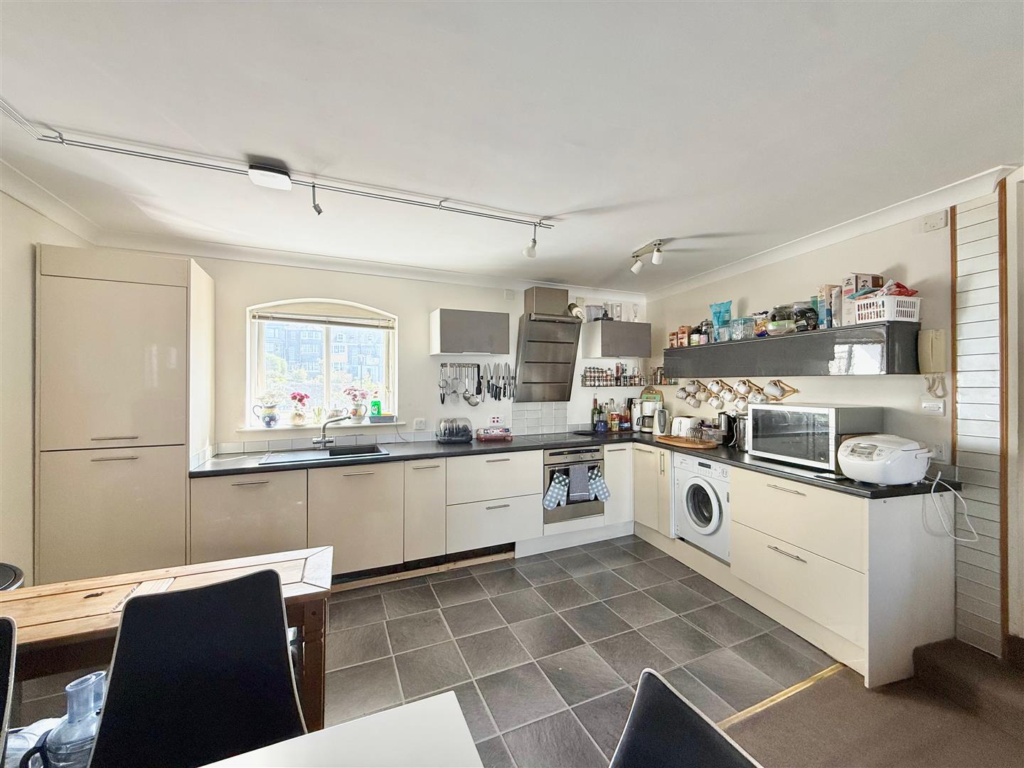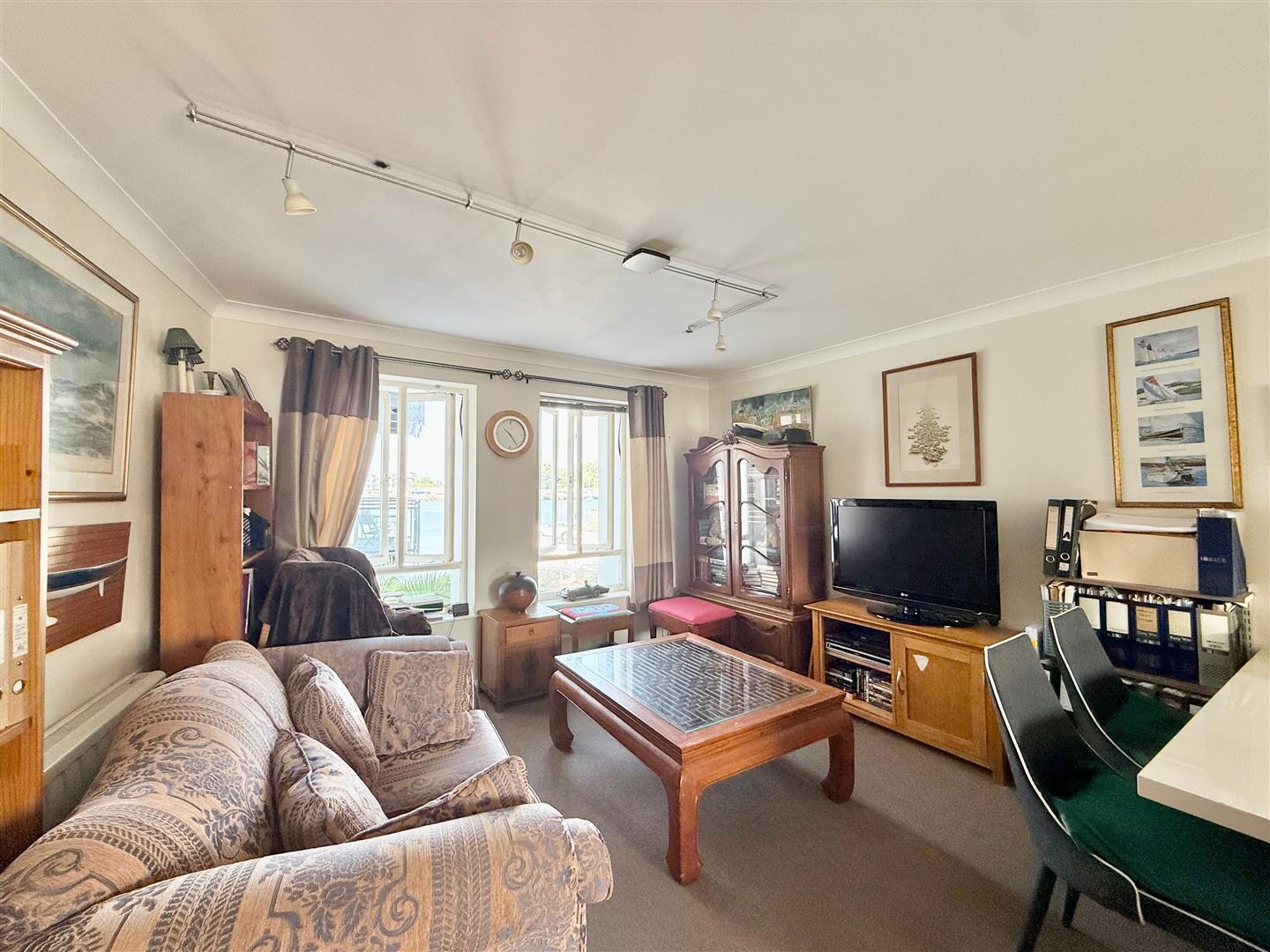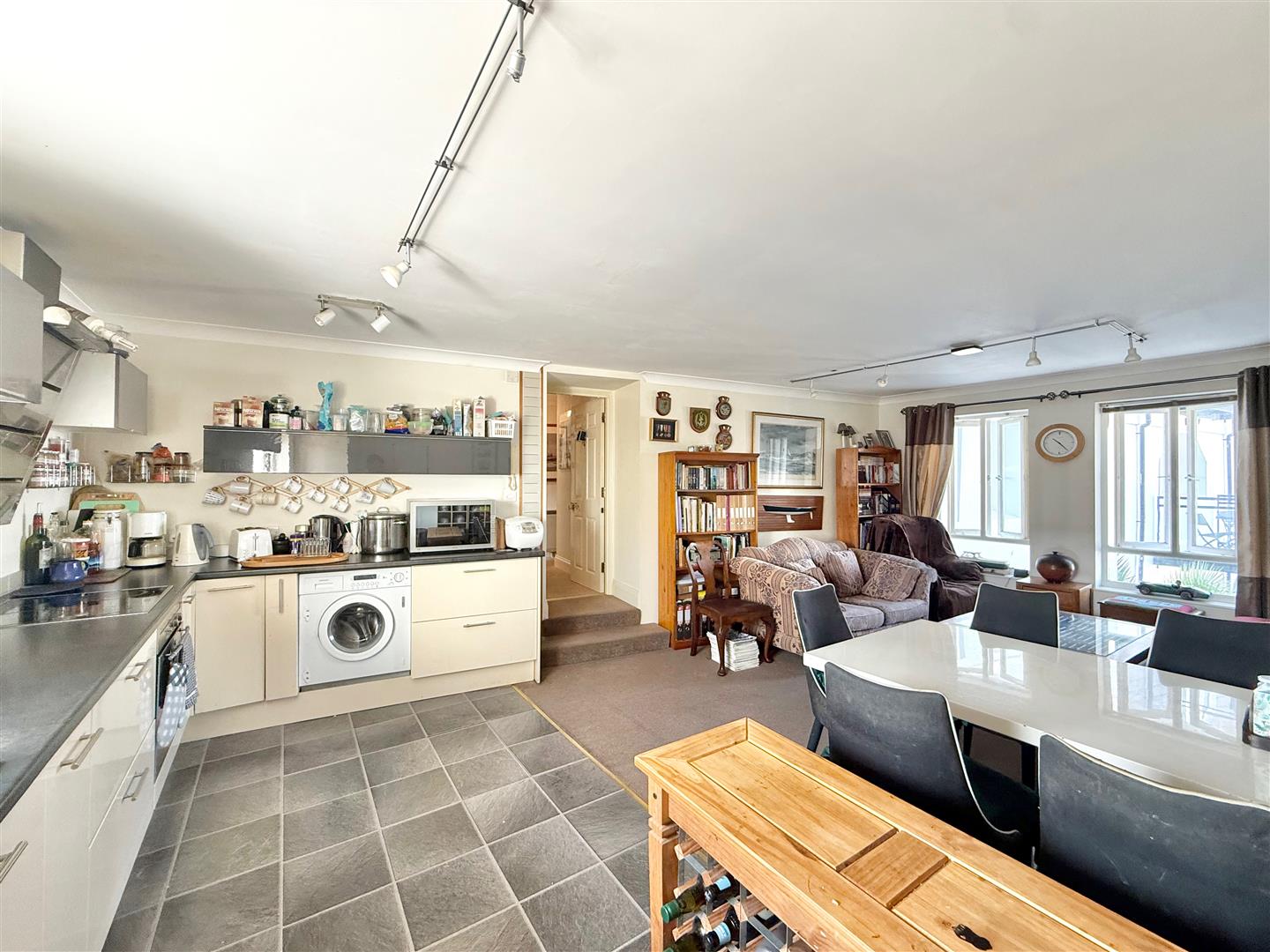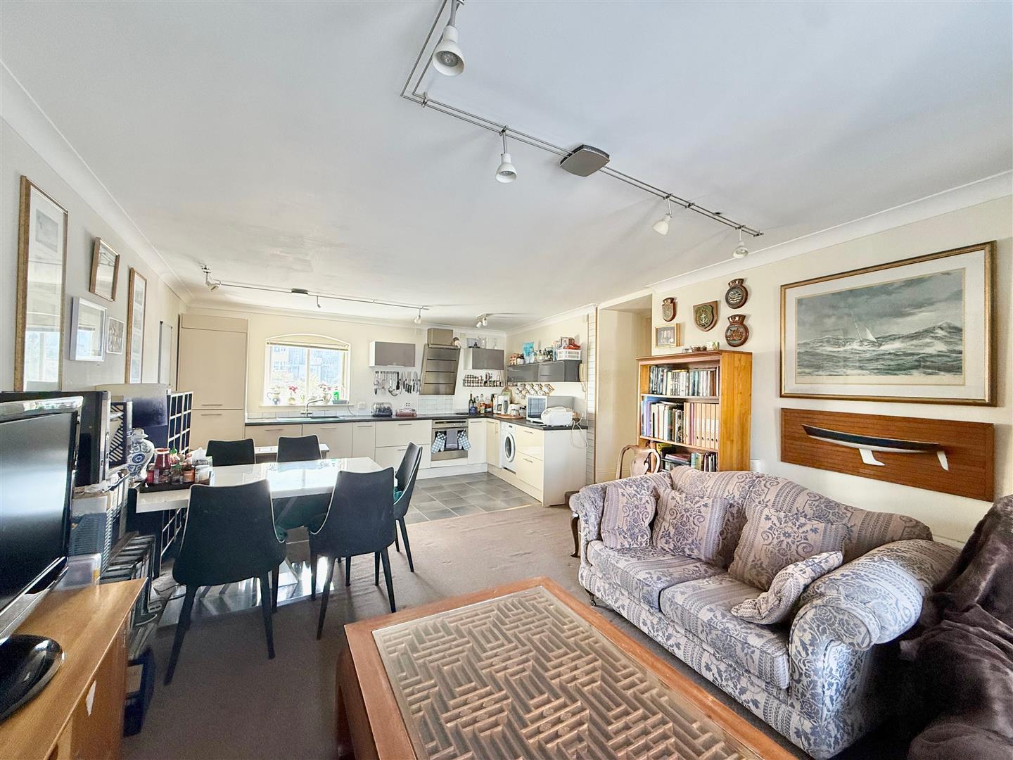 Open-Plan Living Room & Kitchen - 6.73m x 4.45m at widest point (22'1 x 14'7 at wide - A generous open-plan room providing ample space for seating and dining. The room is dual aspect with windows to the front and rear elevations. The windows from the rear provide lovely water views. The kitchen area is fitted with a range of matching cabinets with work surfaces and tiled splash-backs. Built-in oven and hob with a cooker hood above. Inset sink unit. Washing machine. Dishwasher. Built-in integral fridge-freezer.