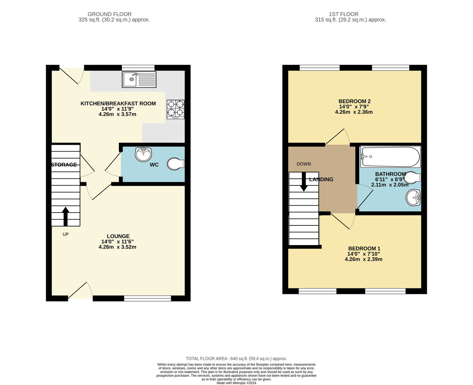 Bedroom one is a spacious double room with two windows to the rear elevation. Bedroom two is a further double with windows to the front and a built in storage cupboard.