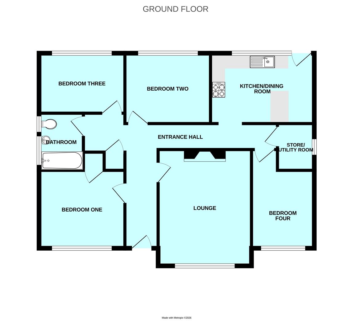 Detached bungalow situated in this highly popular cul-de-sac within the coastal village. There is a superb rear garden, plus a front garden and driveway. The accommodation comprises an entrance hall, lounge with wood burner, kitchen/dining room, 4 bedrooms & a nicely-fitted bathroom. The property has double-glazing & central heating.