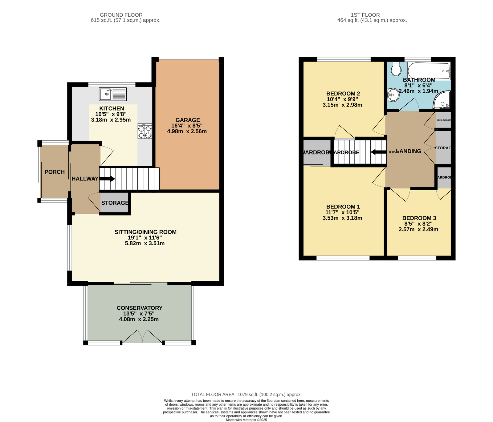 From the main hallway, carpeted stairs ascend to the first-floor landing, where there is an airing cupboard housing a Worcester gas-fired combination boiler, additional storage.