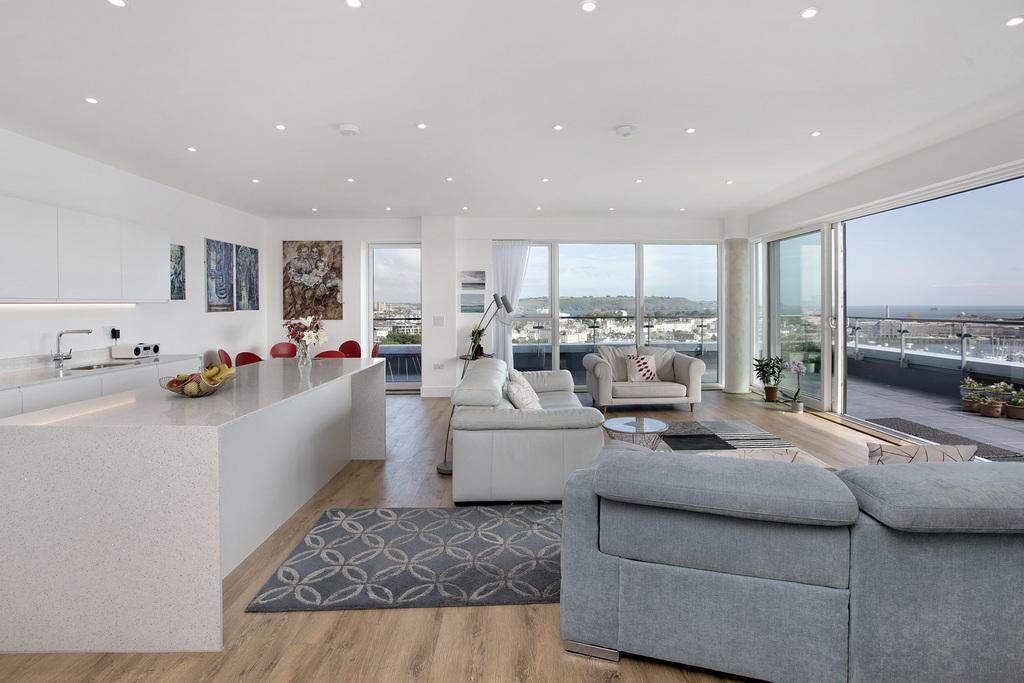 Set just below the penthouse level in Teesra House, 147 Mount Wise Crescent occupies one of the building's most coveted positions on the sixth floor. One of only three apartments at this height, it enjoys a sense of calm and discretion, with the lift close by for straightforward access. Teesra House is widely regarded as one of Plymouth's most desirable addresses, attracting a quietly notable mix of residents who value privacy, security and a distinctly current feel, completed in 2023, alongside those extraordinary, far-reaching water views across Plymouth Sound.