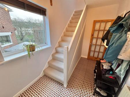 From the main hallway, carpeted stairs ascend to the first-floor landing, which has a window to the side elevation and loft access. Bedroom one is a spacious double room with a fitted storage cupboard and a bay window to the front elevation. Bedroom two is a further double with a window to the rear elevation. Bedroom three is a good-sized single with a window to the front elevation.