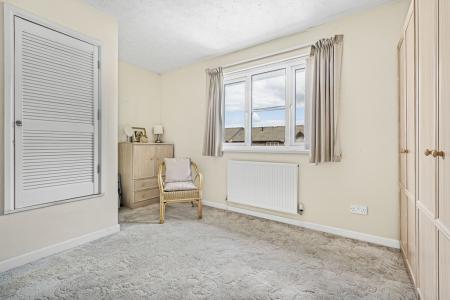 Double glazed window to front with fitted blind, over stairs cupboard housing Worcester gas fired central heating boiler, radiator.