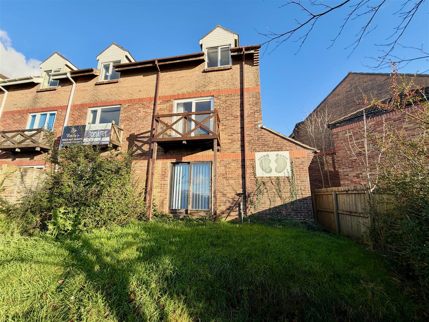Outside - The allocated parking for the maisonette is under a car port which, as you are looking directly at the building, is to the right-hand side. The allocated parking for the commercial unit is directly in front of the property on a brick-paved hardstand, leading to the front doors for both 16 and 16a Branson Court. There is access around 16a via a slabbed walkway to the rear garden which is enclosed by fencing and mature hedging and mainly laid to lawn with a concrete hardstand.