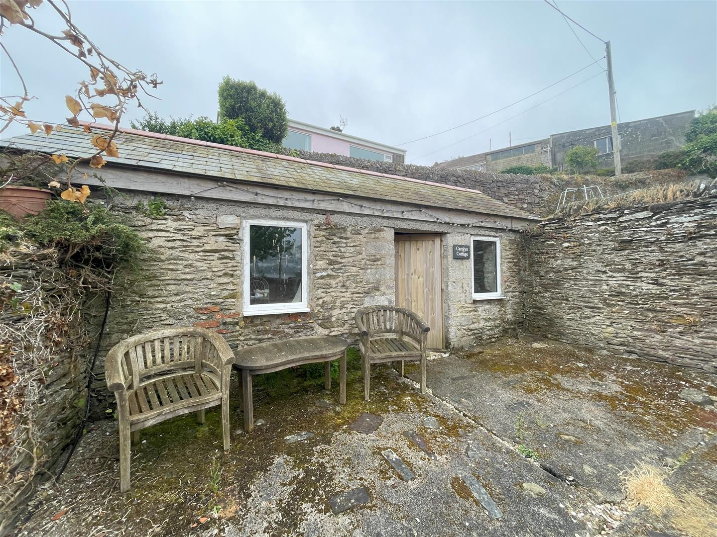 Outside - The property is accessed via a shared pathway from Fore Street. A substantial timber gate affords privacy and opens to a courtyard with access to the basement, currently used for storage. Steps lead up to the lovely private gardens, enclosed by attractive stone walling and laid mainly to lawn. There is a separate stone outbuilding also used for storage but has potential for other uses, subject to the necessary permissions. Steps lead up to the front door and access to the open plan living area.