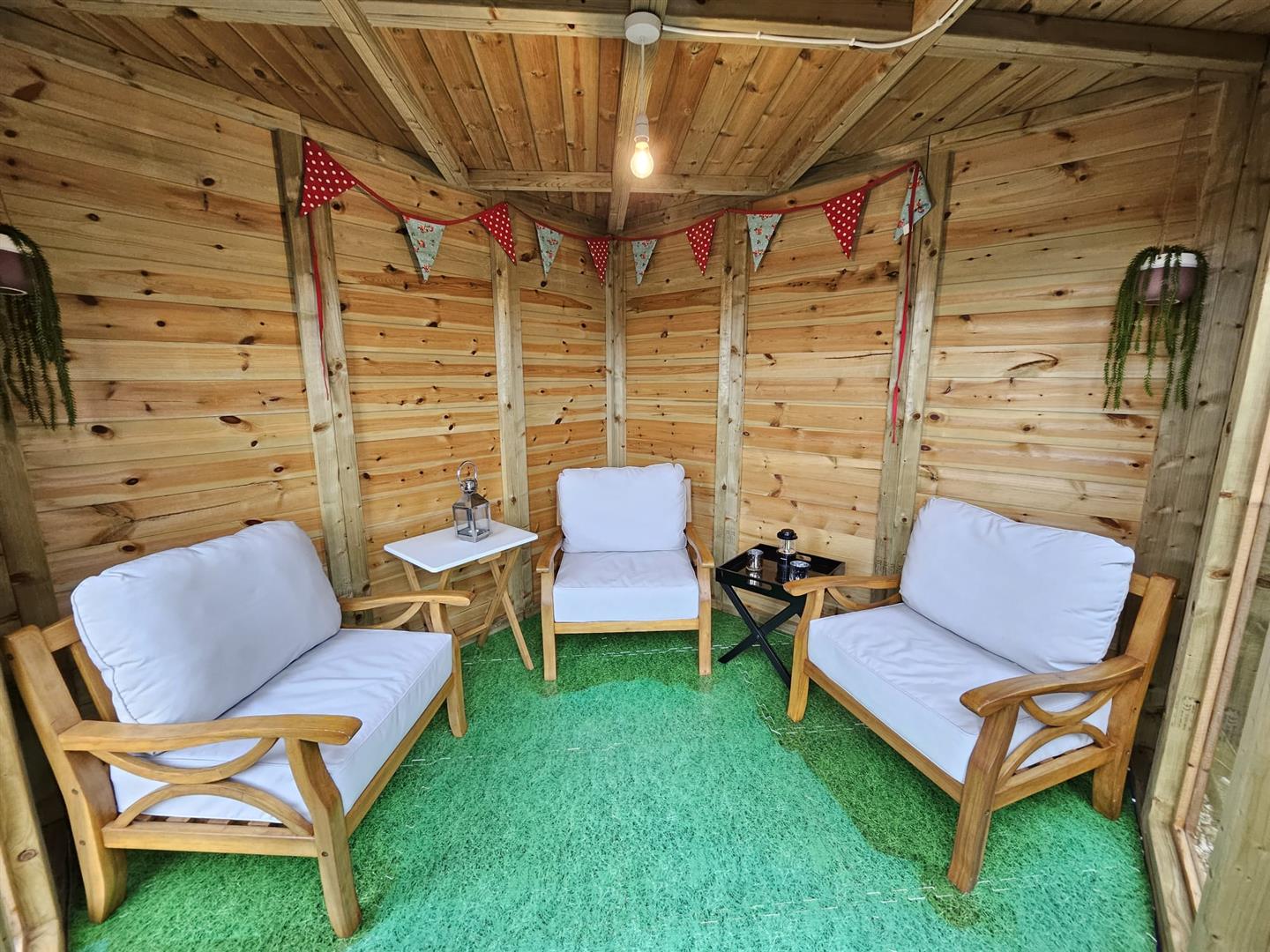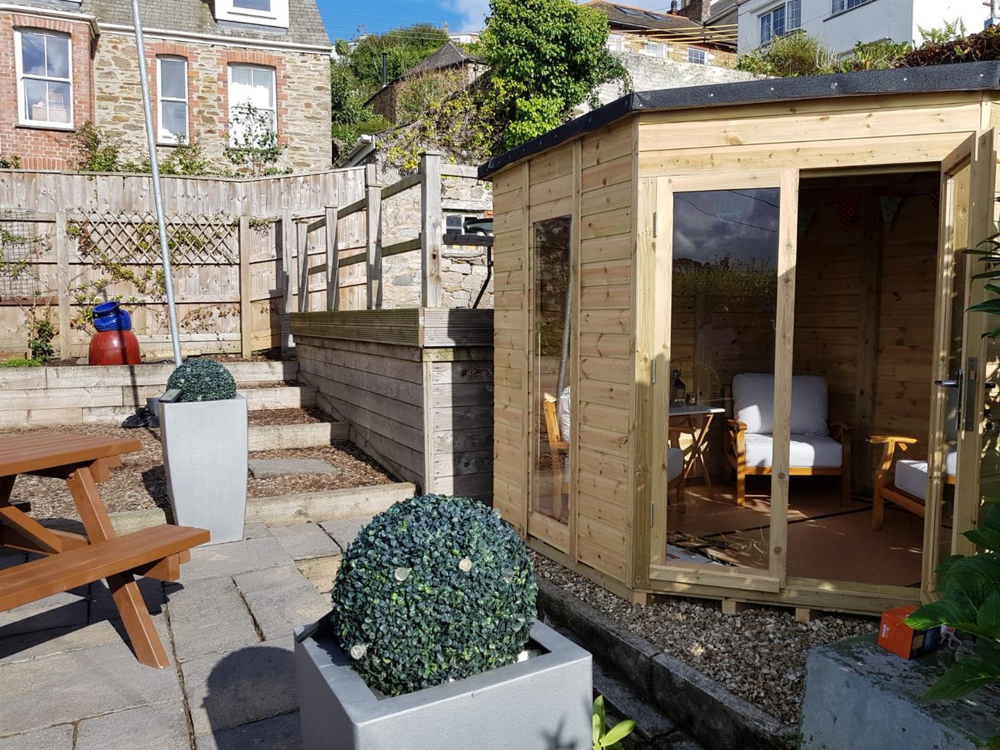 - DECKING, PATIO AREA AND WOODEN SHED
