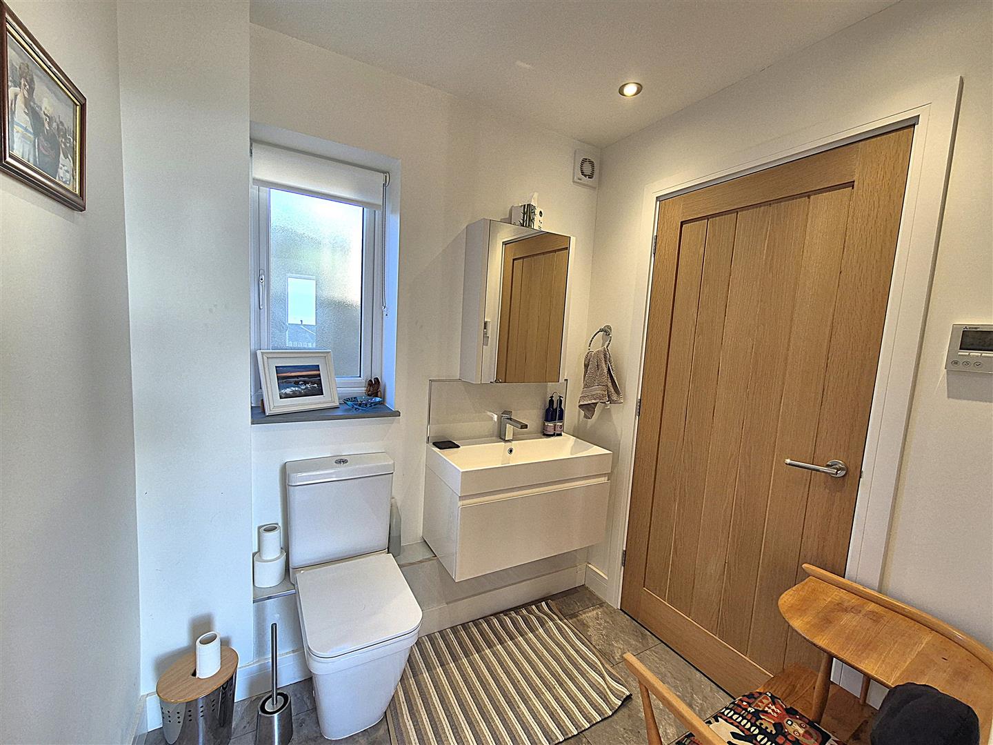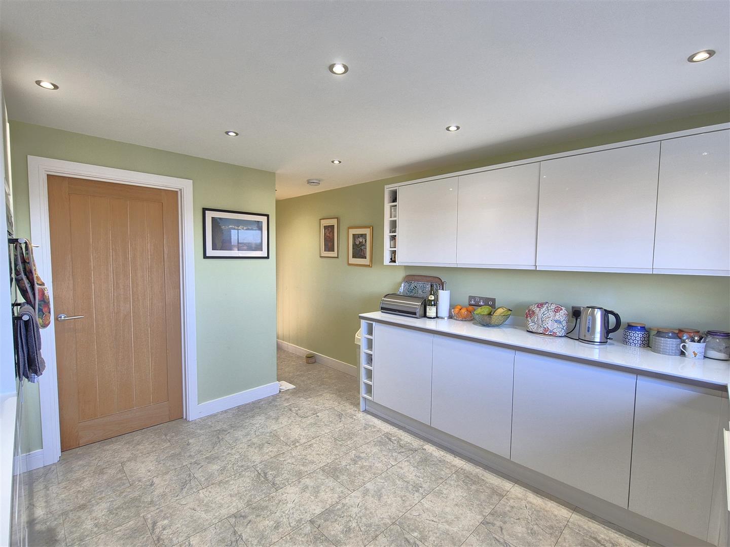 Steps rise from the car park area to the main front door which opens into a spacious and welcoming entrance hall. From here, doors open to a useful storage cupboard, great for storing shoes and coats, a cloakroom, which consists of a wash hand basin, WC and a further storage cupboard housing the water tank and plumbing for the underfloor heating which runs throughout the ground floor. Stairs rise from the entrance hall with further doors leading to the kitchen and sitting/dining room.