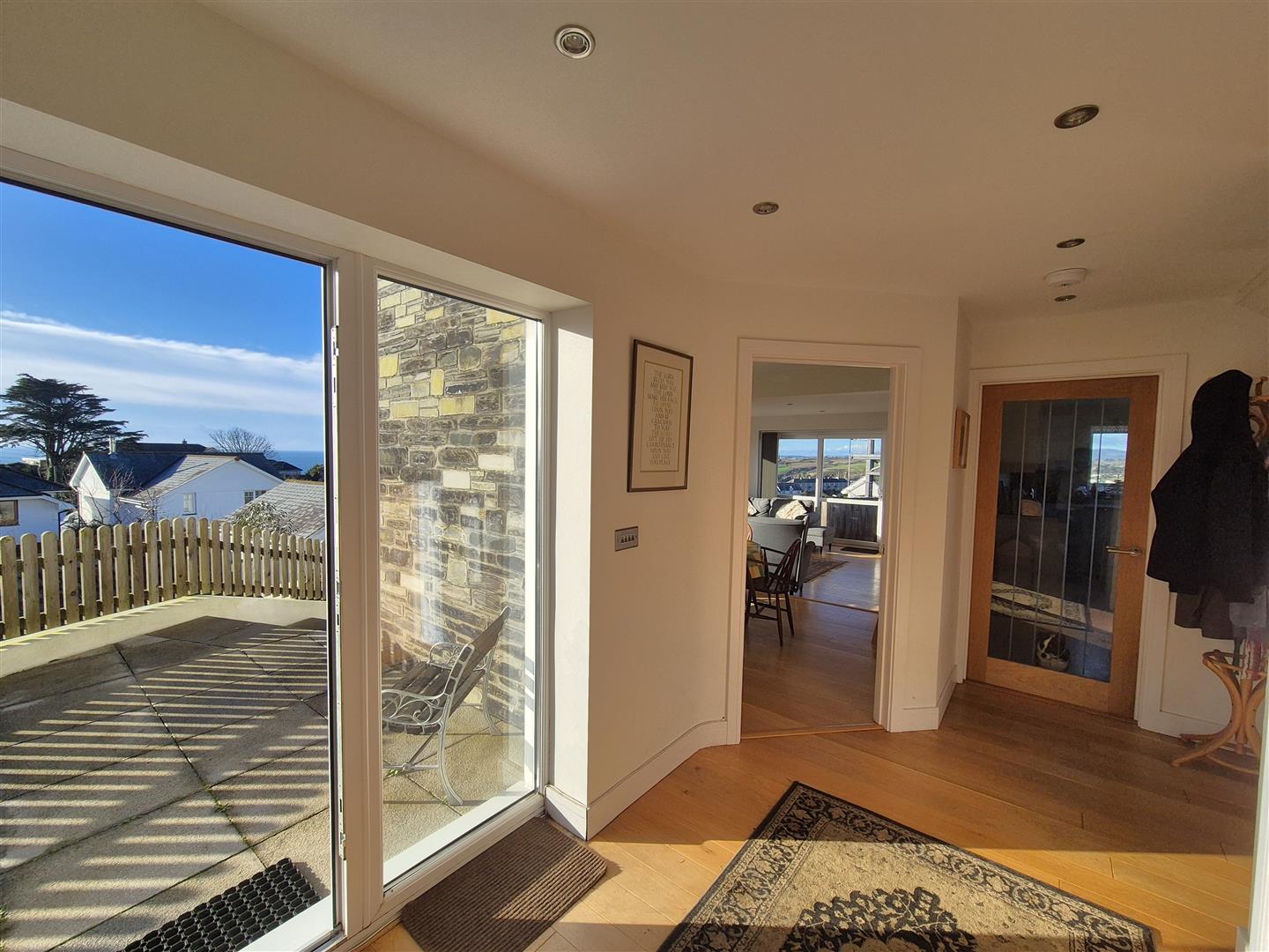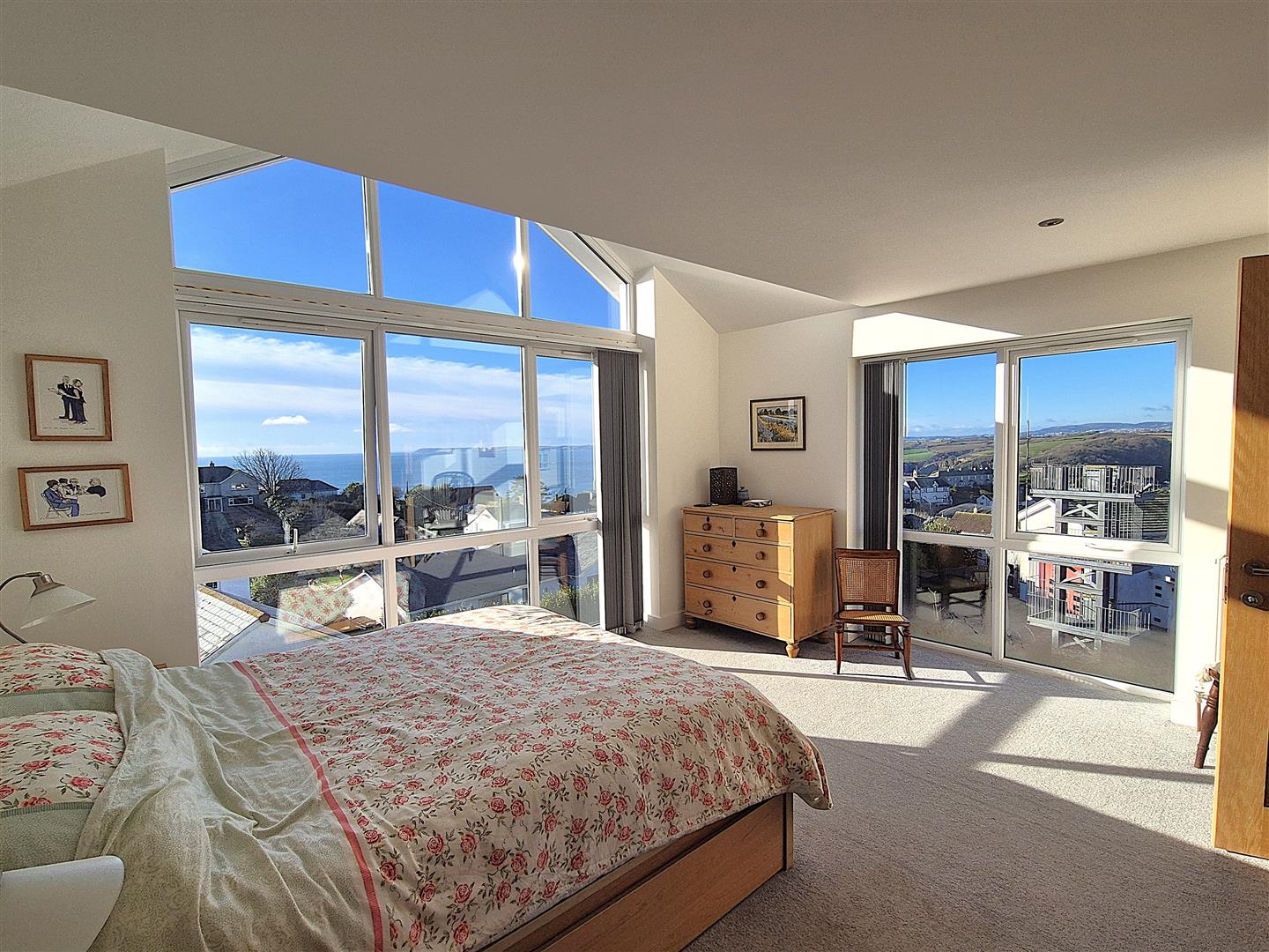 Stairs rise up to the landing giving access to a twin bedroom, double bedroom, principal bedroom, 4th bedroom/study, family bathroom and storage cupboard. Due to the thoughtful design off this property, all bedrooms have fabulous views over the sea and Cornish coastline.