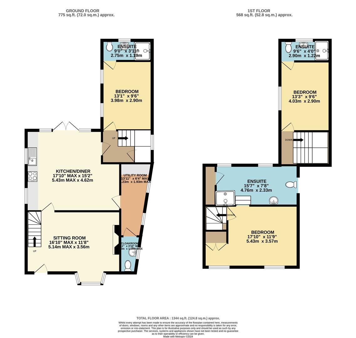As mentioned, the property has been cleverly extended in the past, creating a ground floor bedroom and first floor bedroom leading off from the kitchen dining room. Both rooms are of a good size and both have modern en suite shower rooms comprising of a WC, wash hand basin, heated towel rail and shower cubicle. The stairwell provides useful understairs storage.